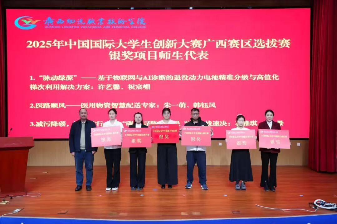 杨一笔为获得2025年中国国际大学生创新大赛广西赛区银奖项目师生代表颁奖