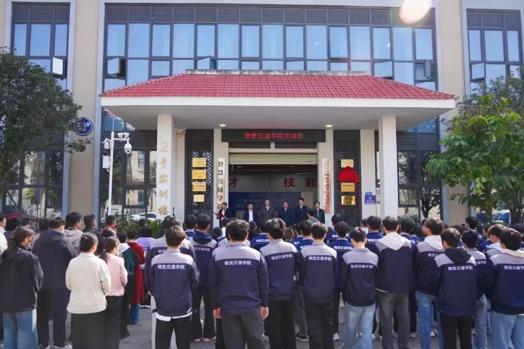 广西现代物流集团贵港机电有限公司职工代表、学校智慧交通学院师生代表参加揭牌仪式。