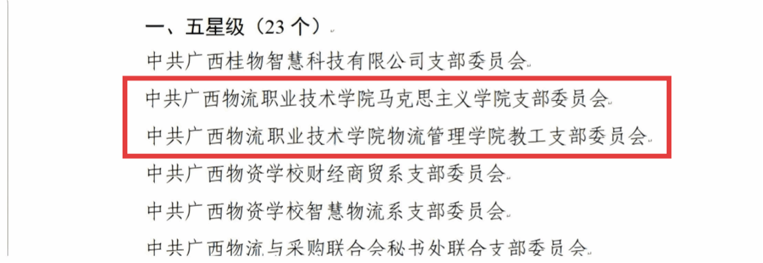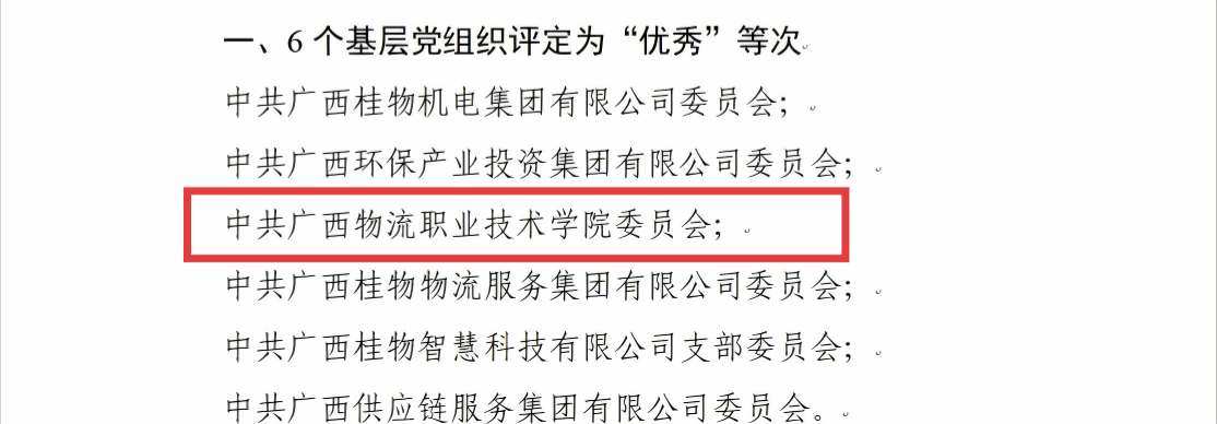 近日,广西现代物流集团有限公司党委公布2025年党支部星级评定结果及2025年度直属单位党建工作考核结果,beat365官网党建工作考核获评“优秀”等次,2个党支部获评“五星级党支部”,6个支部获评“四星级党支部”,2个支部获评“三星级党支部”,彰显了党建与办学治校深度融合的丰硕成果,为学校高质量发展再添浓墨重彩的一笔!