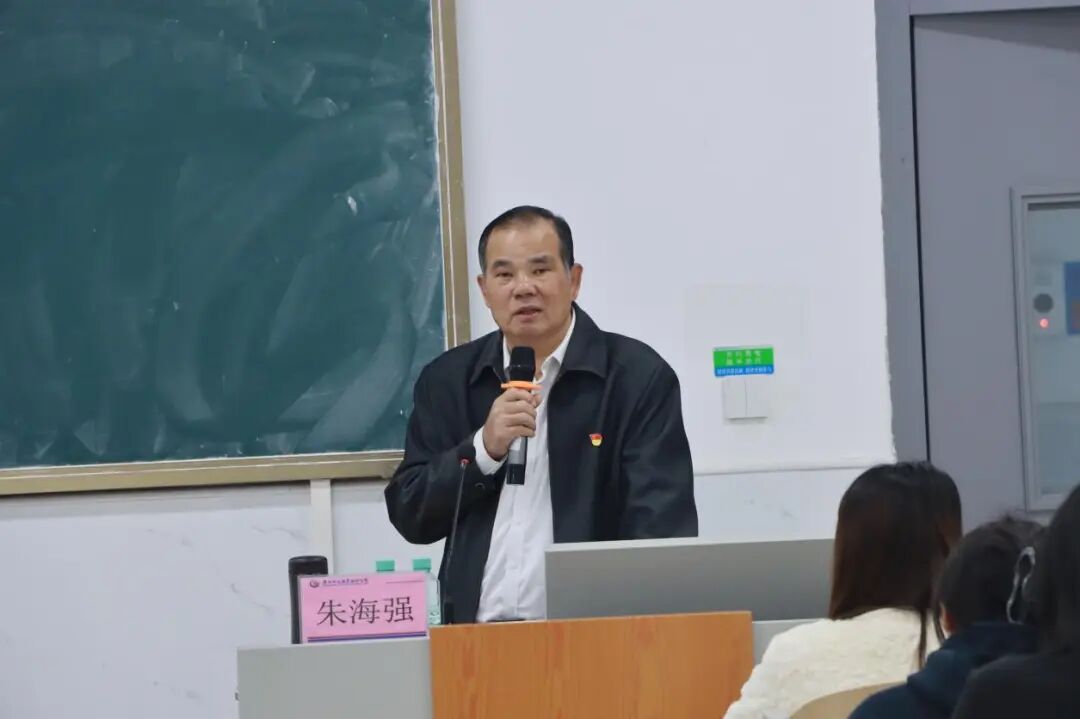 ▲党委副书记、校长朱海强面向物流工程学院、人工智能与大数据学院职工及学生代表宣讲党的二十届四中全会精神