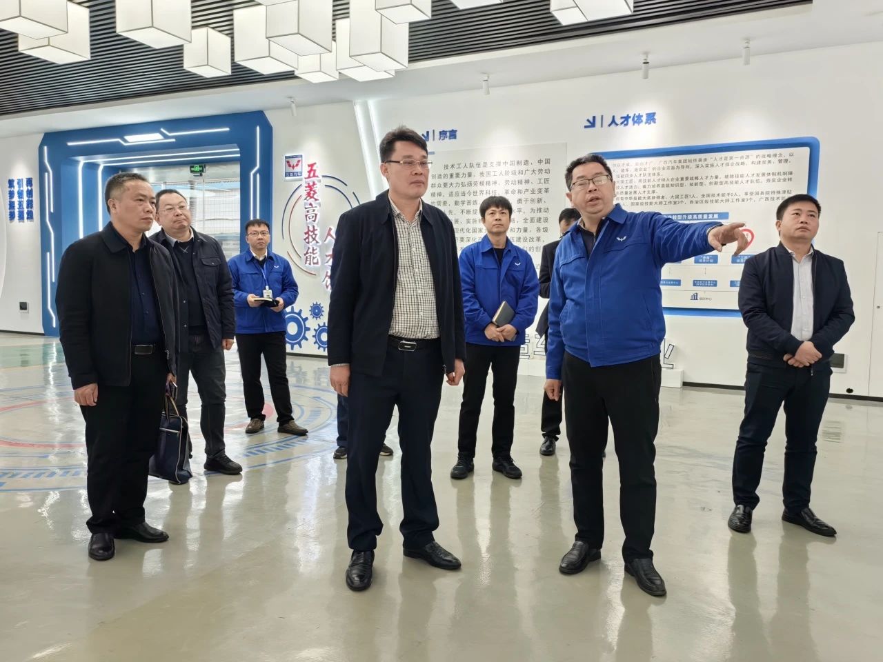 韦光茂在上汽通用五菱汽车股份有限公司深入汽车生产线涂胶车间看望汽车制造与试验技术专业实习生,听取学生最真实的实习反馈;在广西汽车集团有限公司五菱工匠学院与“全国劳动模范”“大国工匠年度人物”“全国技术能手”获得者郑志明、“全国五一劳动奖章”“全国技术能手”获得者丘柳滨等行业领军人物进行座谈交流,了解他们如何能在平凡的岗位上,磨炼技艺,提升技能。