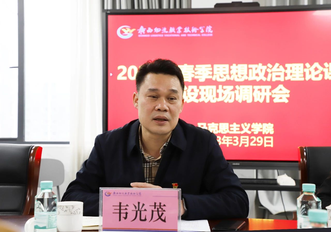 韦光茂指出,近年来马克思主义学院积极探索思政课创新发展,思政教学教研工作取得了一定成效。学校党委将持续落实立德树人根本任务,推动思政课建设不断向前向上发展。马克思主义学院要始终坚持正确政治方向,扎实推动党的二十大精神进教材进课堂进头脑,坚持正确的选人用人标准,坚持守正创新,开足开齐思政课必修课,完善思政课教学保障机制建设。全体思政教师要发挥积极性、主动性、创造性,自觉做到“政治强、情怀深、思维新、视野广、自律严、人格正”,推动思政课改革创新,不断增强思政课的思想性、理论性和亲和力、针对性,源源不断在培育堪当民族复兴大任时代新人的道路上贡献力量。