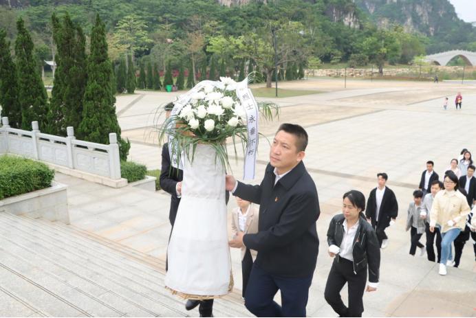 为深入学习贯彻党的二十大精神,缅怀革命先烈,传承红色基因,响应助力贵港市创建全国文明城市号召,为文明贵港贡献力量,同时加强大学生文明教育、劳动教育,4月8日上午,物流管理学院党支部党员教师、入党积极分子以及学院学生代表30余人到贵港市南山寺开展“缅怀革命先烈,传承红色基因”主题党日暨文明祭扫活动。