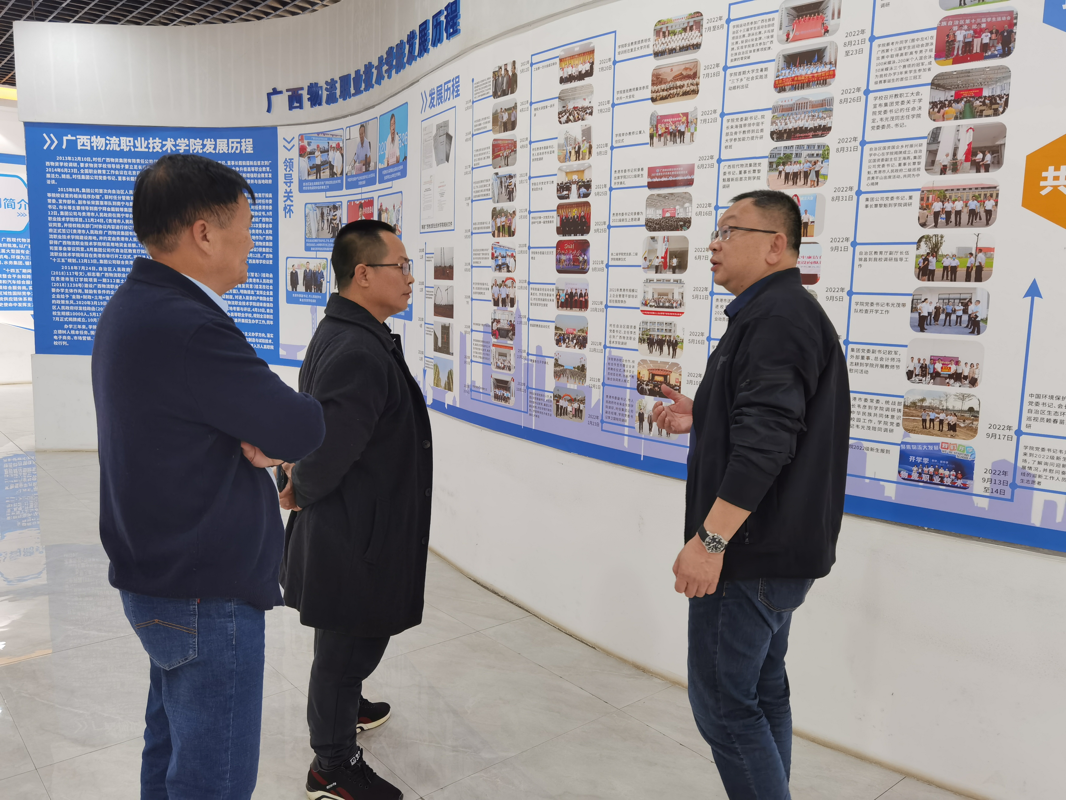 为加强学校之间的合作交流,实现学校间的资源互通、共享,走合作、共赢之路。4月25日下午,南宁市武鸣区职业技术学校校长陆大有、副校长李维喜到beat365官网进行参观交流。党委组织部副部长黄维忠、物流交通学院院长莫军参加交流活动。