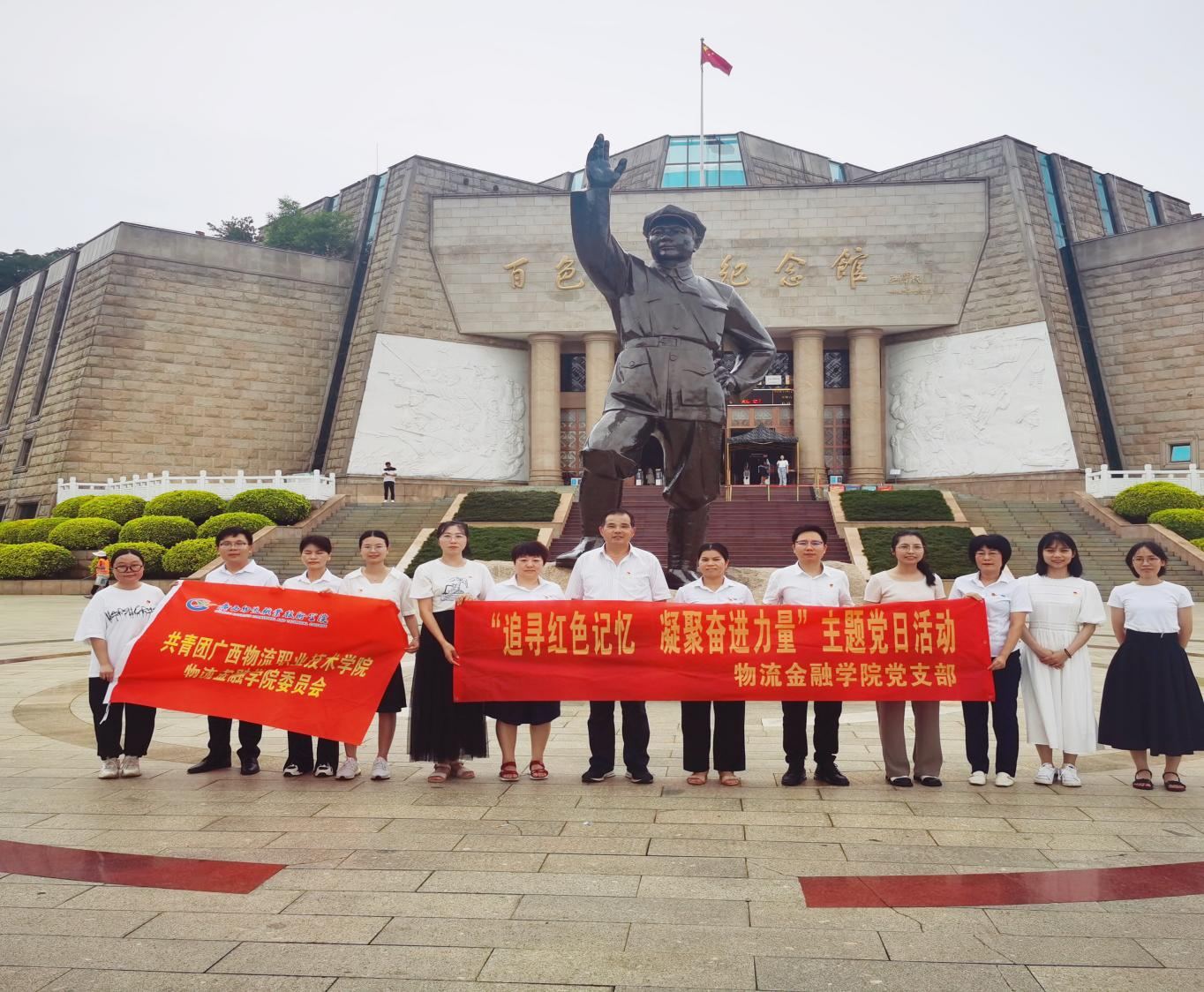 为深入贯彻落实党的二十大精神和基层党建“五基三化”提升年行动相关要求,让党员教师更好的接受党性教育、革命传统教育,传承红色精神,进一步增强党员教师的使命感和责任感,在建党102周年来临之际,物流金融学院党支部于2023年6月30日赴百色起义纪念馆开展“追寻红色记忆,凝聚奋进力量”迎“七一”主题党日活动。学院党委副书记、院长朱海强作为普通党员参加活动。