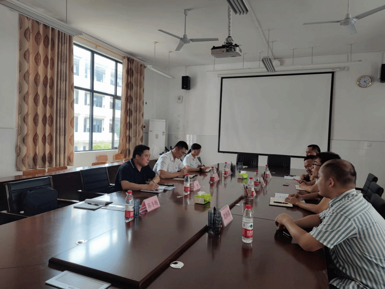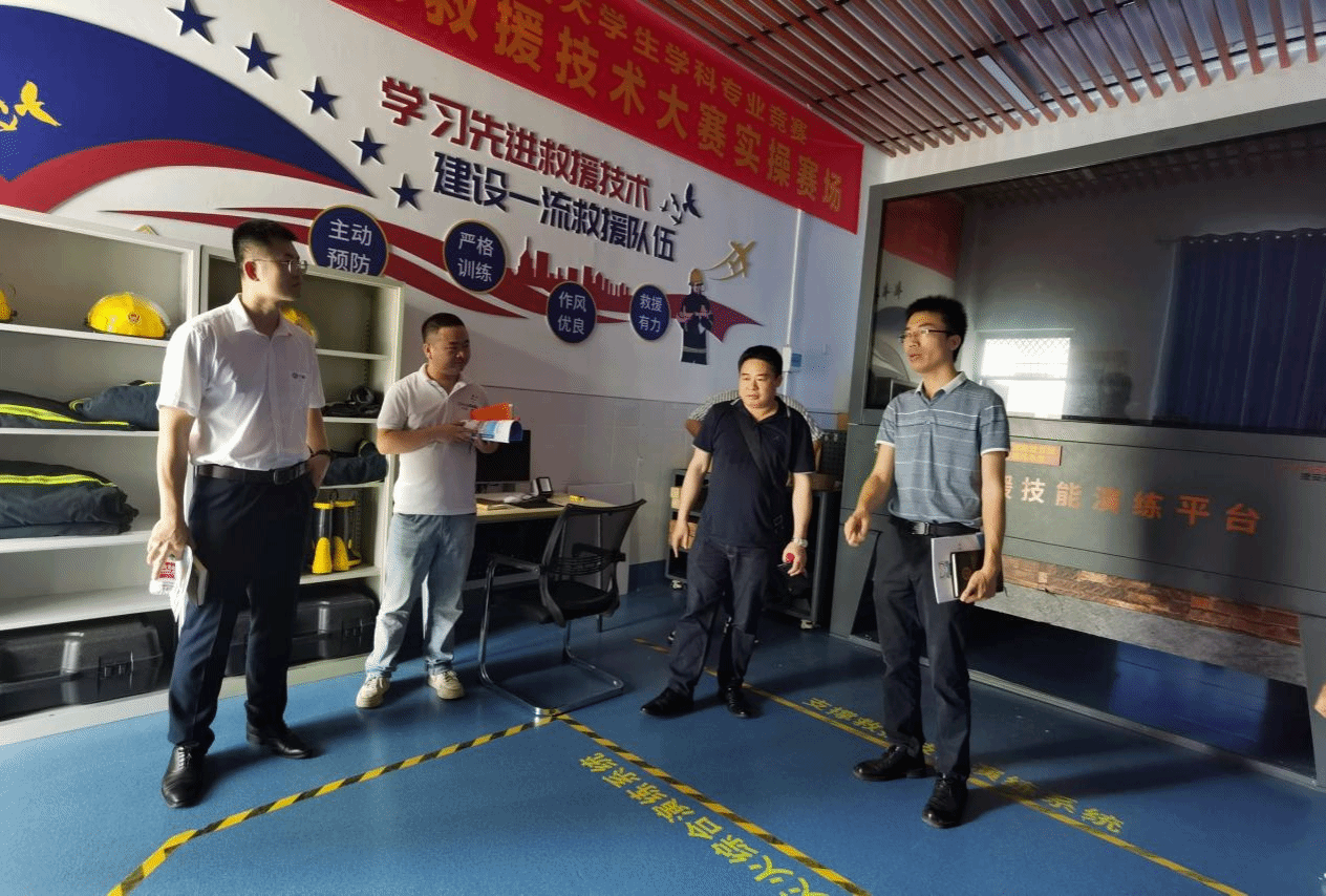 曾德明对周鹏一行的到来表示热烈的欢迎,并介绍了广西安全工程职业技术学院安全管理学院的基本情况,分享生产事故应急救援赛项备赛经验。双方就专业建设、人才培养、学生实习就业、职业技能大赛以及实训室建设等工作进行充分的交流。双方均表示希望以后有更多的交流机会,为学院专业高质量发展努力。