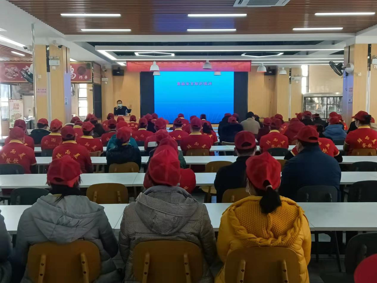 为进一步提高食品安全意识,严格按照食品安全加工程序操作,避免食物中毒事件发生,让教职工吃得安心、吃得放心,2月24日上午,学校安全生产(消防安全生产)领导小组组织食堂从业人员进行食品安全培训。