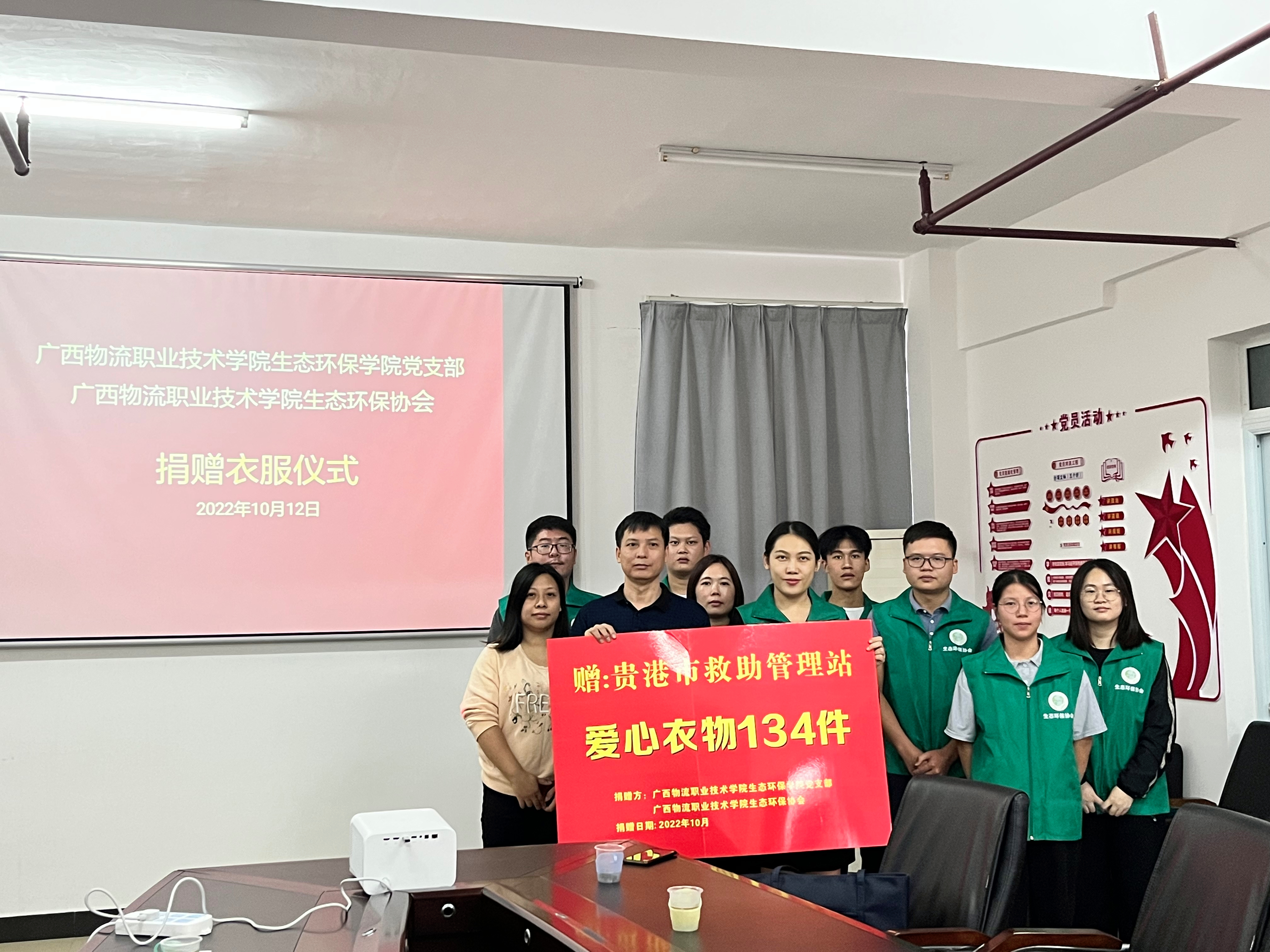 随后,双方举行捐赠衣服仪式,生态环保学院党支部向贵港市救助管理站捐赠爱心衣物134件。