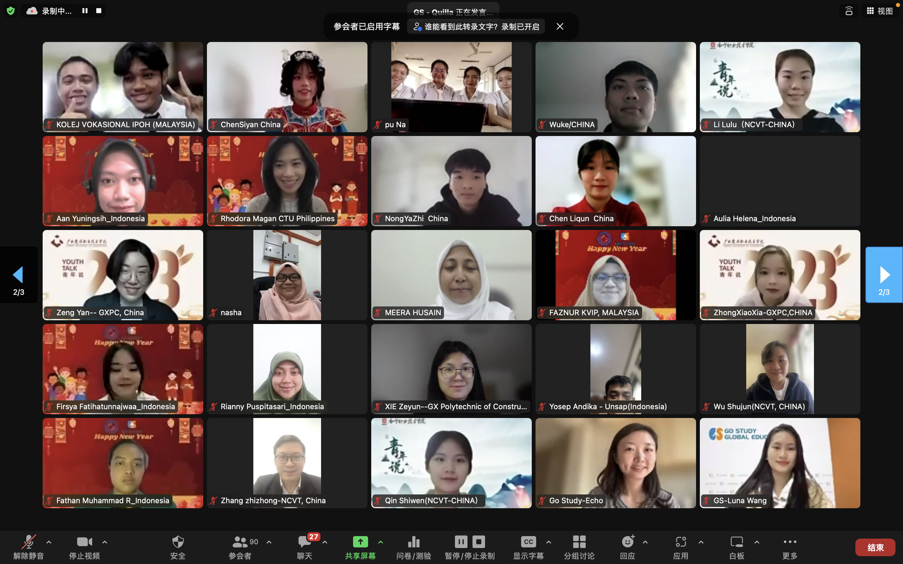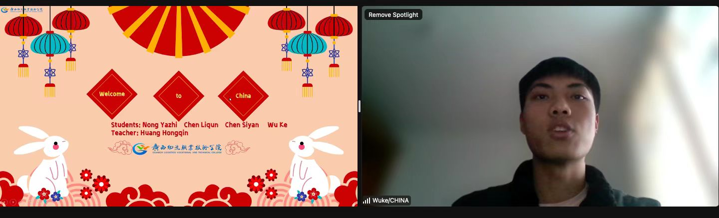 2023年2月10日,学院组织学生通过视频连线方式参加了广西国际友城职业教育联盟(GISCA-VE)举办的首期“青年说”活动。