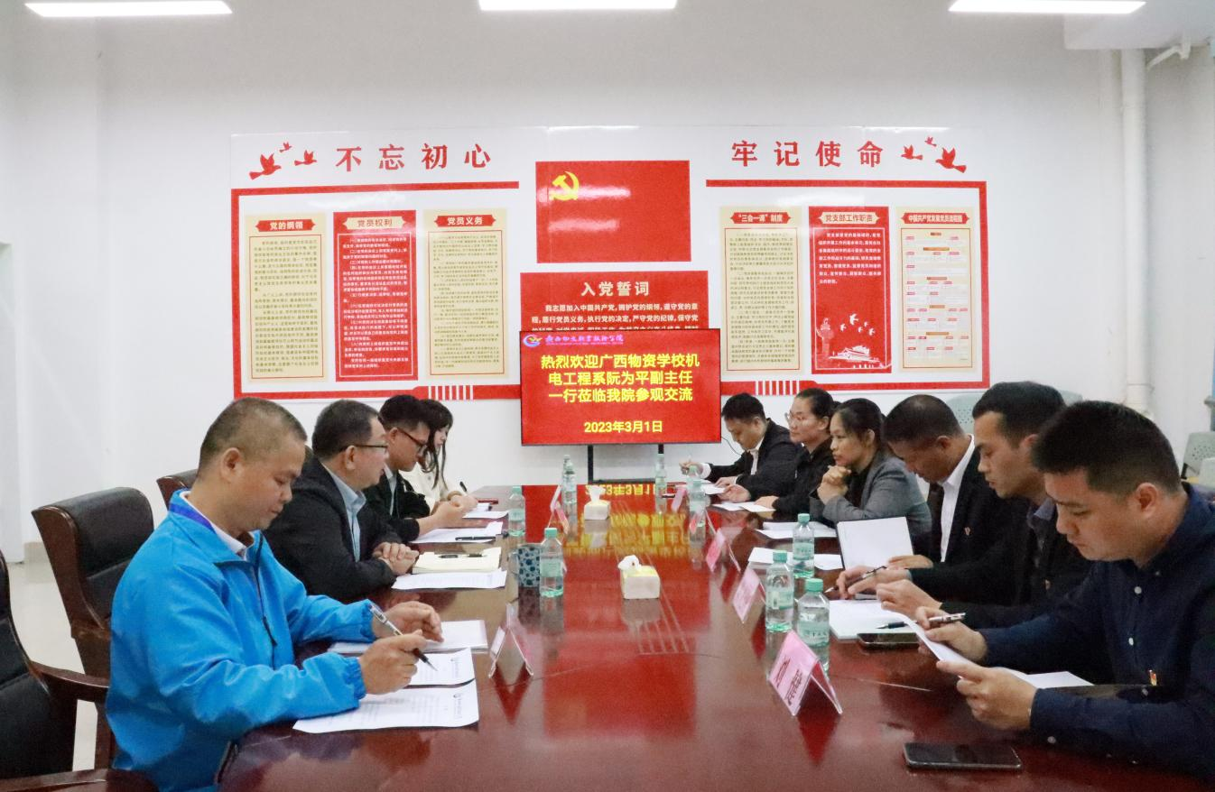 3 月 1 日下午,为贯彻落实集团公司第一届职工代表大会第三次全体会议部署的重点工作,推进广西物资学校与广西物流职业技术学院的中高职融合发展,不断提高学校办学水平和质量,为广西培养更多物流产业技术工人和汽车工匠人才,广西物资学校机电工程系阮为平副主任一行应邀到物流交通学院就中高职融合开展座谈会。物流交通学院党支部书记高成良、院长莫军,物流交通学院教师代表、广西物资学校机电工程系教师代表参加座谈会。