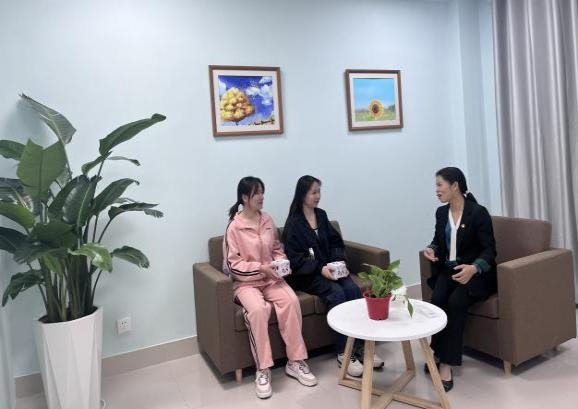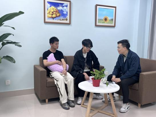 志愿服务队的老师跟学生深入交谈