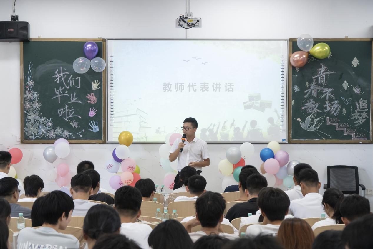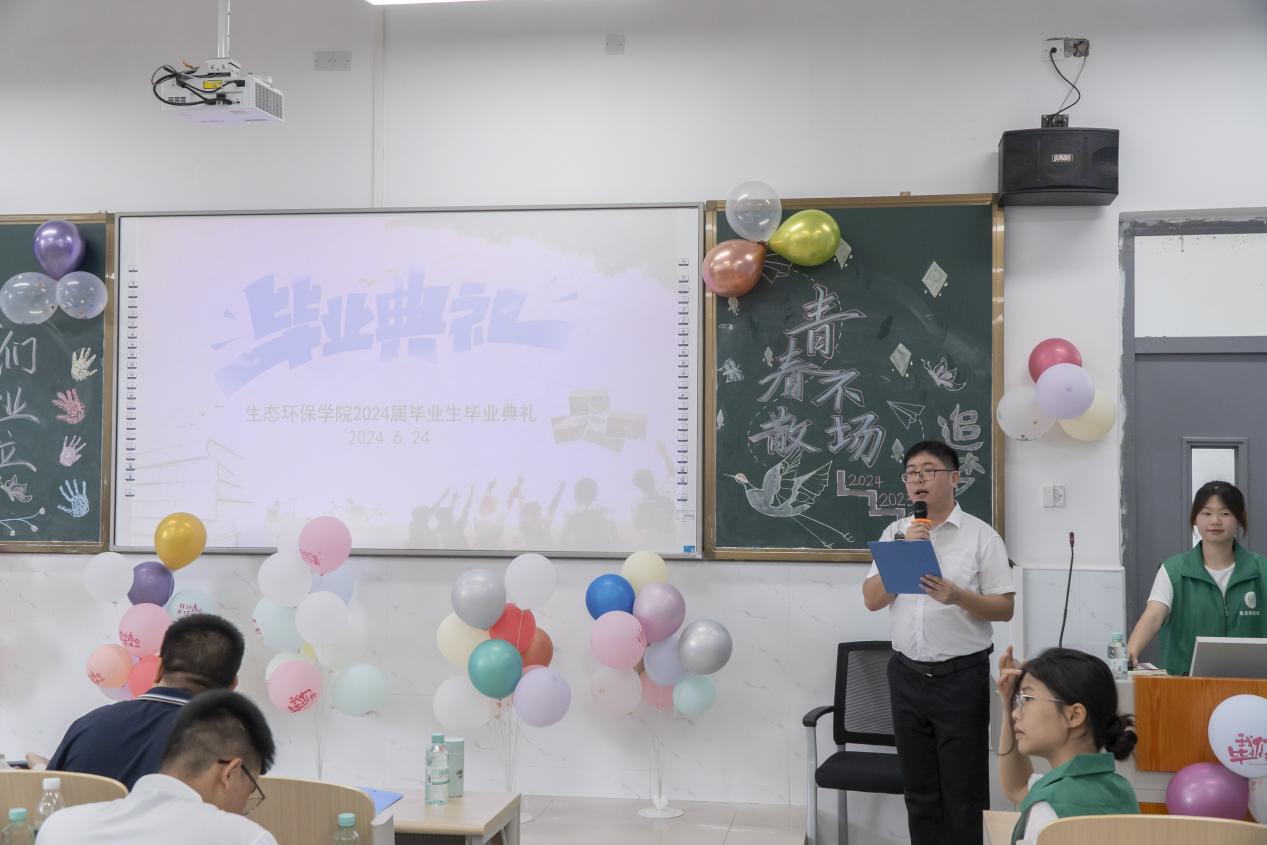 在这个充满喜悦和感动的时刻,生态环保学院副院长(主持工作)、党支部书记许艺馨、生态环保学院副院长周鹏、生态环保学院党支部副书记覃云、毕业班辅导员江震荣、毕业班班主任、全体辅导员、2024届毕业生代表齐聚一堂,共同为即将走出校门的毕业生送上最真挚的祝福。