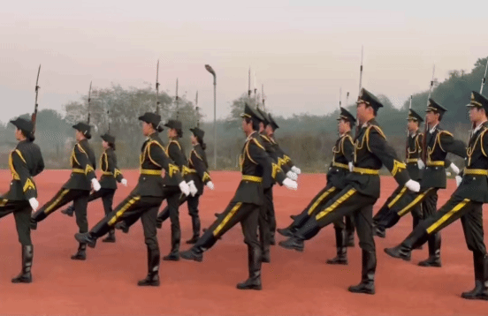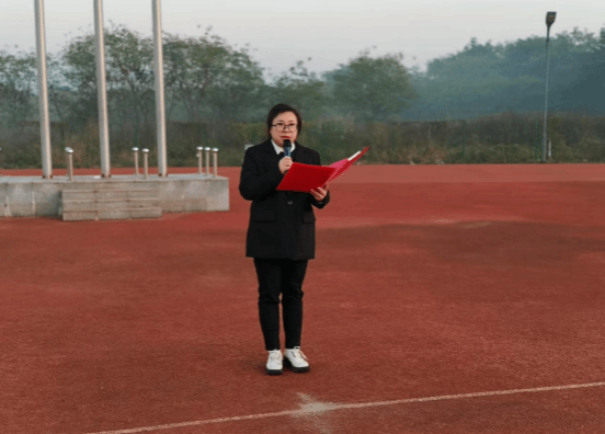 师生们齐聚操场共同见证这一庄严时刻。国旗班的旗手们步伐整齐划一,护送国旗至升旗台。国歌响起,鲜艳的五星红旗缓缓升起,全体师生行注目礼,齐唱国歌。
