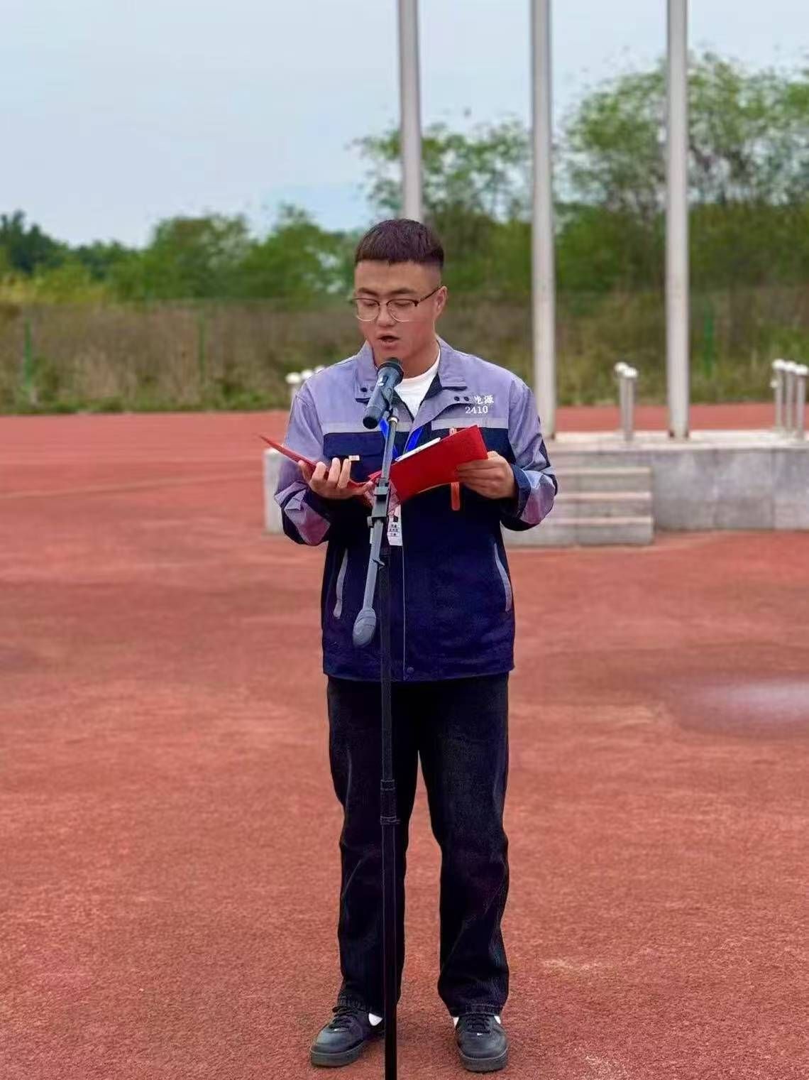 新能源汽车检测与维修技术2410班李鑫同学作为学生代表发言:宿舍是我们在校园里的家,一个温馨、整洁、和谐的宿舍环境对于我们的学习和生活至关重要,大家要爱护宿舍卫生,遵守宿舍公约,共同营造一个整洁、舒适、和谐的宿舍家园。