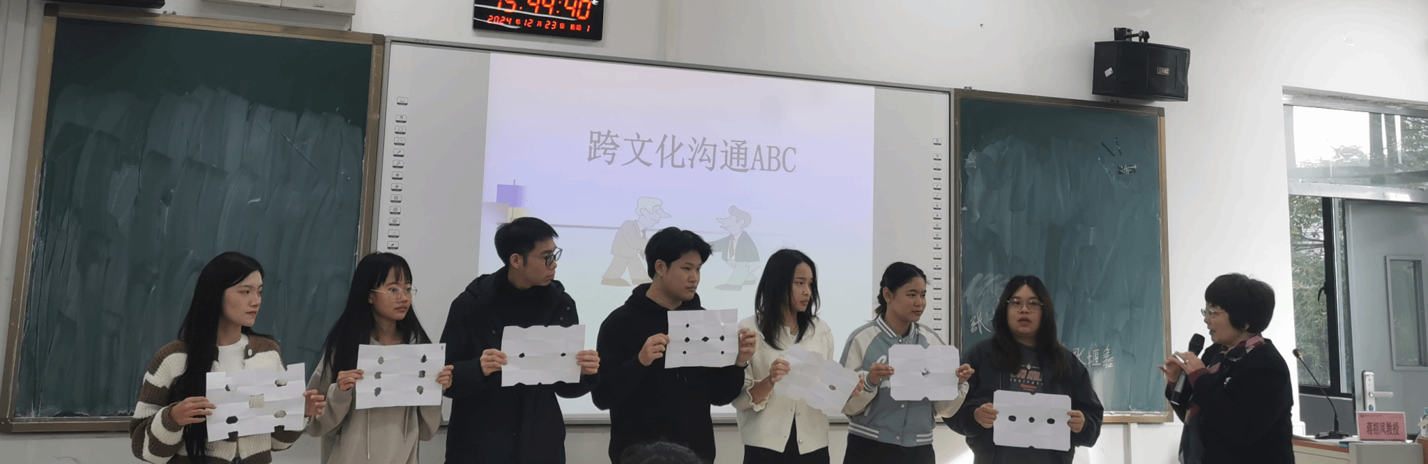 在讲座过程中,蒋教授不仅深入浅出地阐述了理论知识,还通过带领留学生进行撕纸互动游戏,生动展示了文化差异在沟通中的实际影响,使师生们深刻体会到有效沟通策略的重要性。这一环节极大地激发了师生们的参与热情,现场气氛热烈,互动频繁。