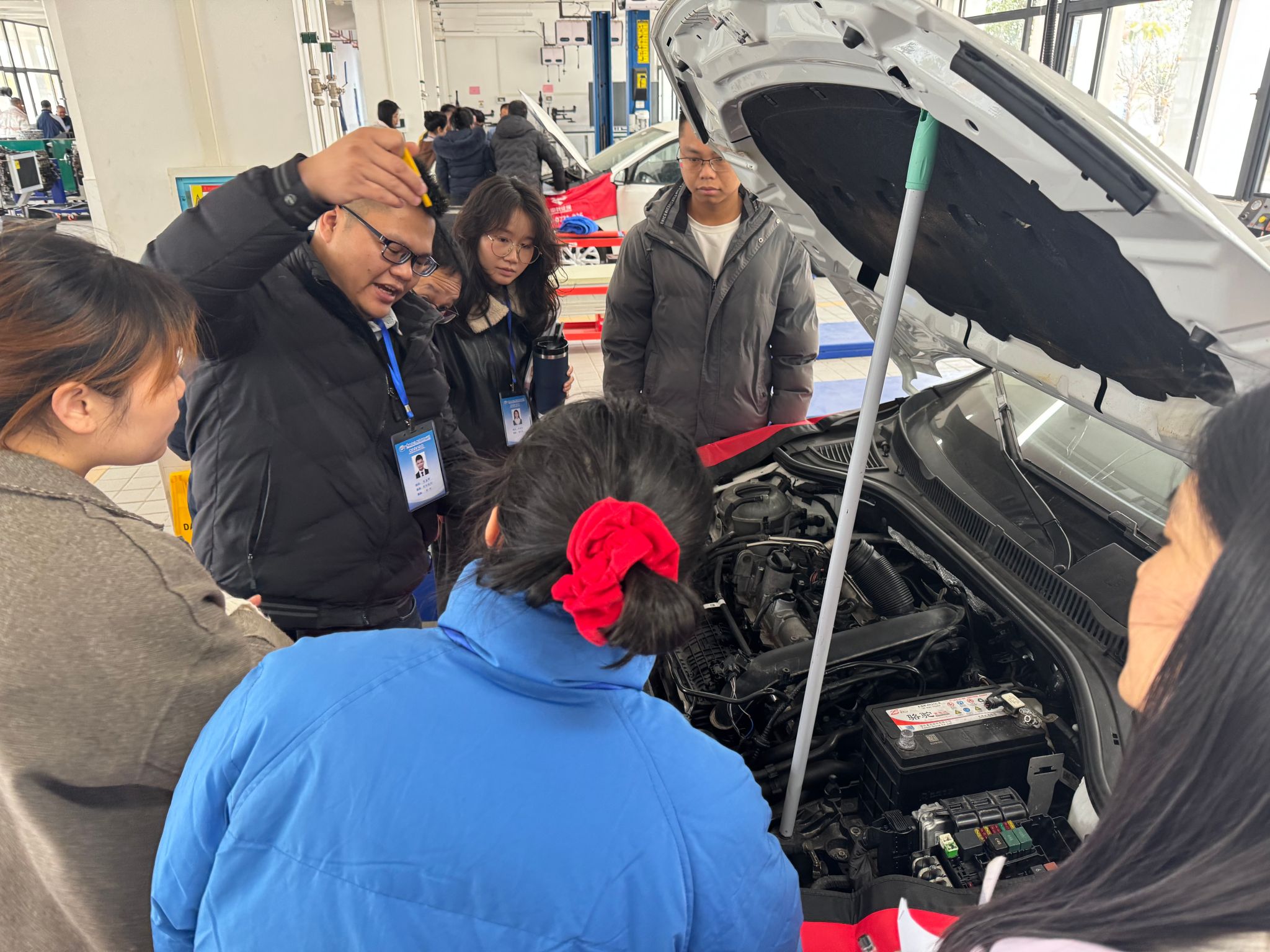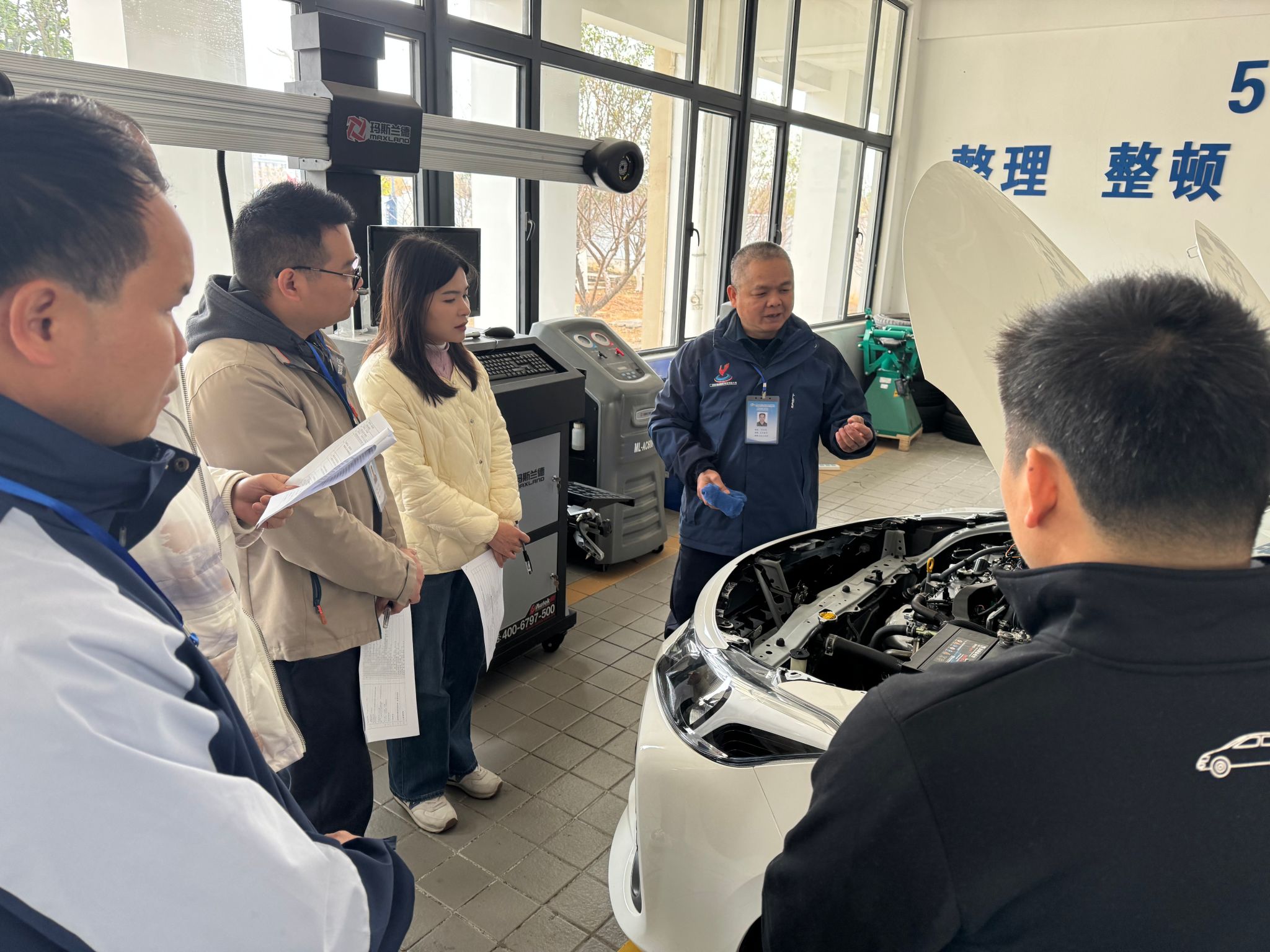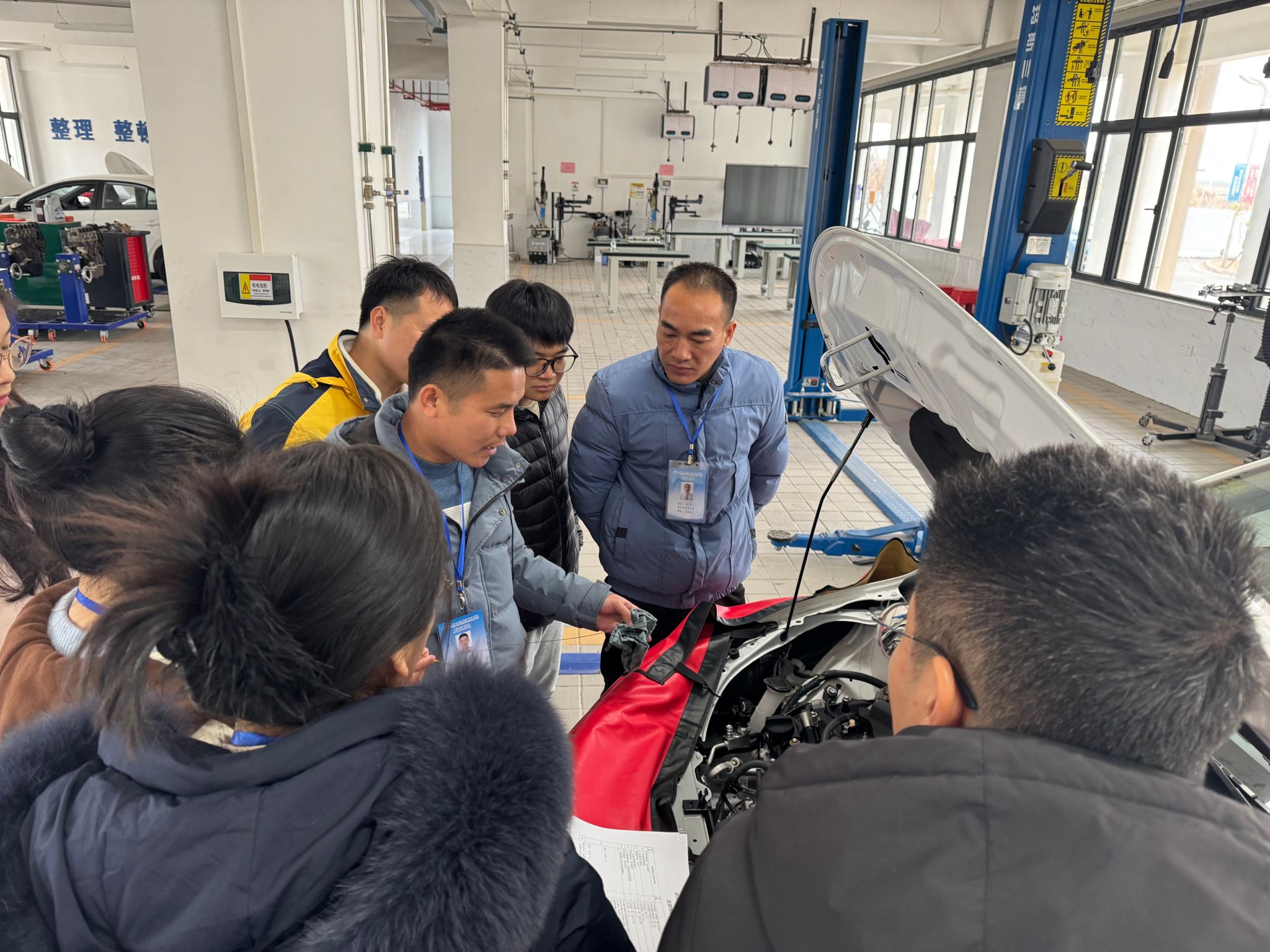 2月24日至25日,物流交通学院紧抓开学前窗口期,开展为期两天的汽车技术专项培训。温志力副院长带领高级技师团队,围绕威驰车型维护标准、发动机/制动/电气系统实操、故障诊断工具使用等核心内容,通过“理论+分组实训”模式深化教师技能储备。全体教师(含行政人员)分4个工位参与考核,确保“人人过关、技术对标行业前沿”。