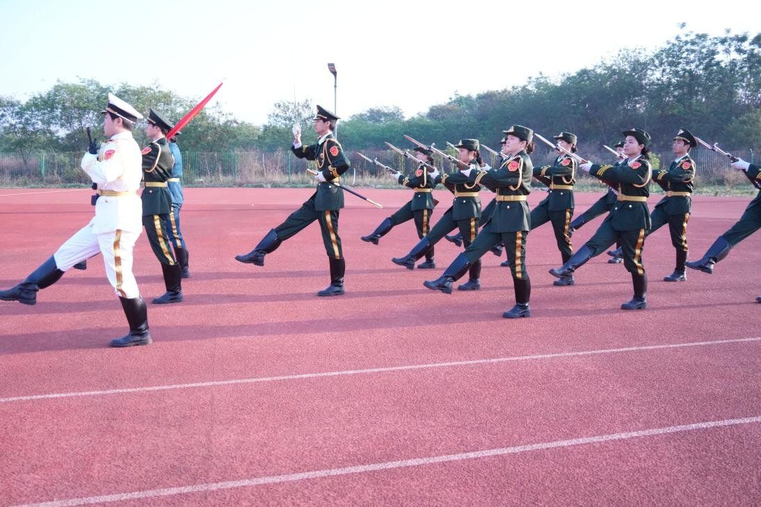 7点整,升旗仪式正式开始。国旗护卫队迈着整齐有力的步伐护送国旗走向升旗台。全体师生面向国旗行注目礼,齐声高唱国歌,爱国之情在每个人心中激荡。