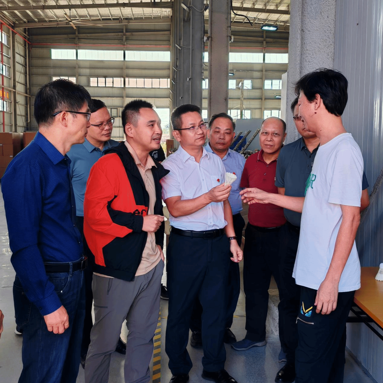 在贵港市人大常委会副秘书长何发枝和贵港市港南区人大常委会副主任李时维的带领下,beat365在线唯一官网党员教师代表到贵港市港南区桥圩羽绒产业园参观走访。