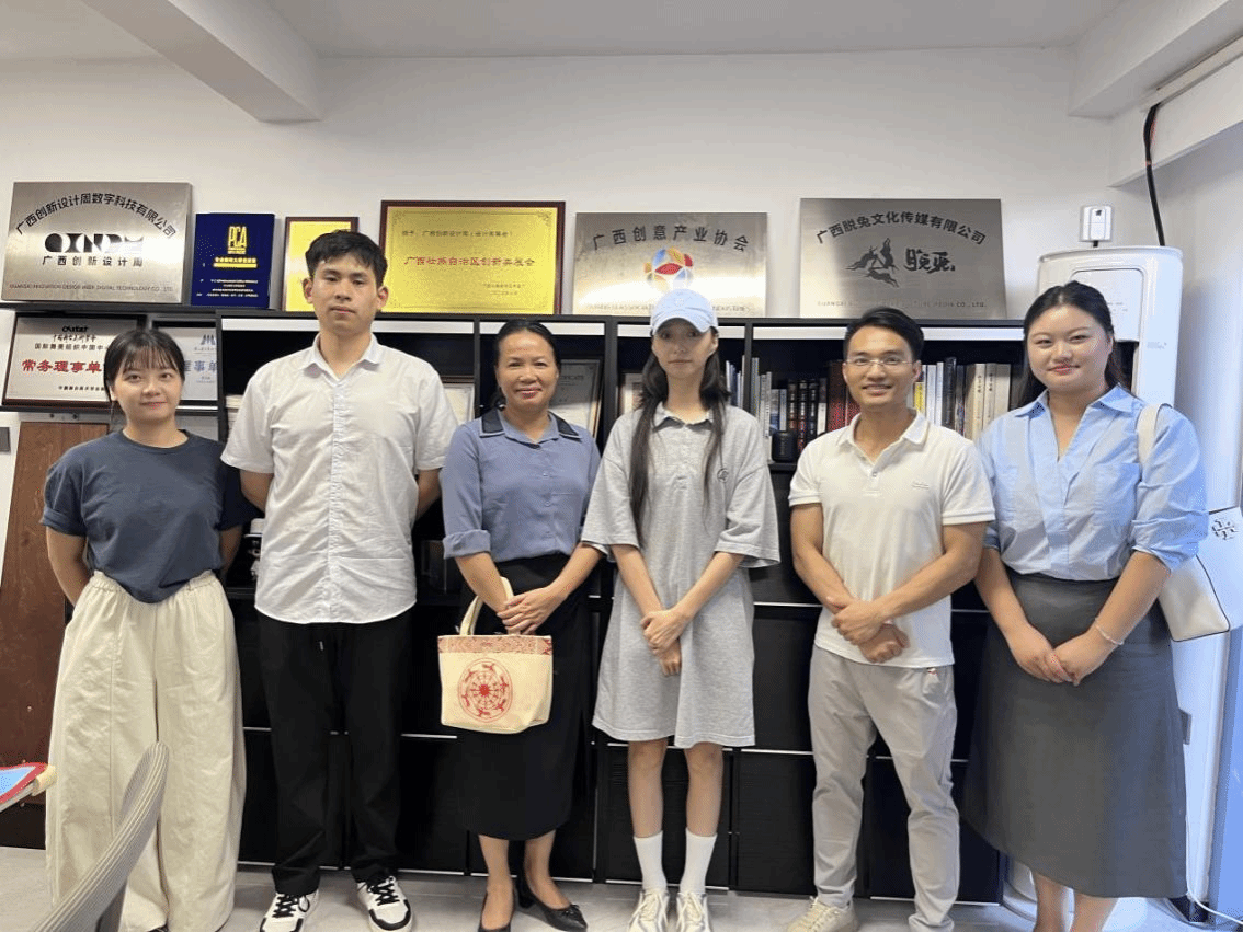 在广西创新设计周数字科技有限公司,公司负责人介绍了在创新设计和数字内容应用服务方面的实践经验。产品艺术设计专业教师吴帆与企业专家就人才培养模式进行了深入交流。企业方表示,当前行业急需既有艺术设计能力又懂数字技术应用的复合型人才,建议学院在课程设置中加强数字文化创意内容应用服务方面的实践训练。