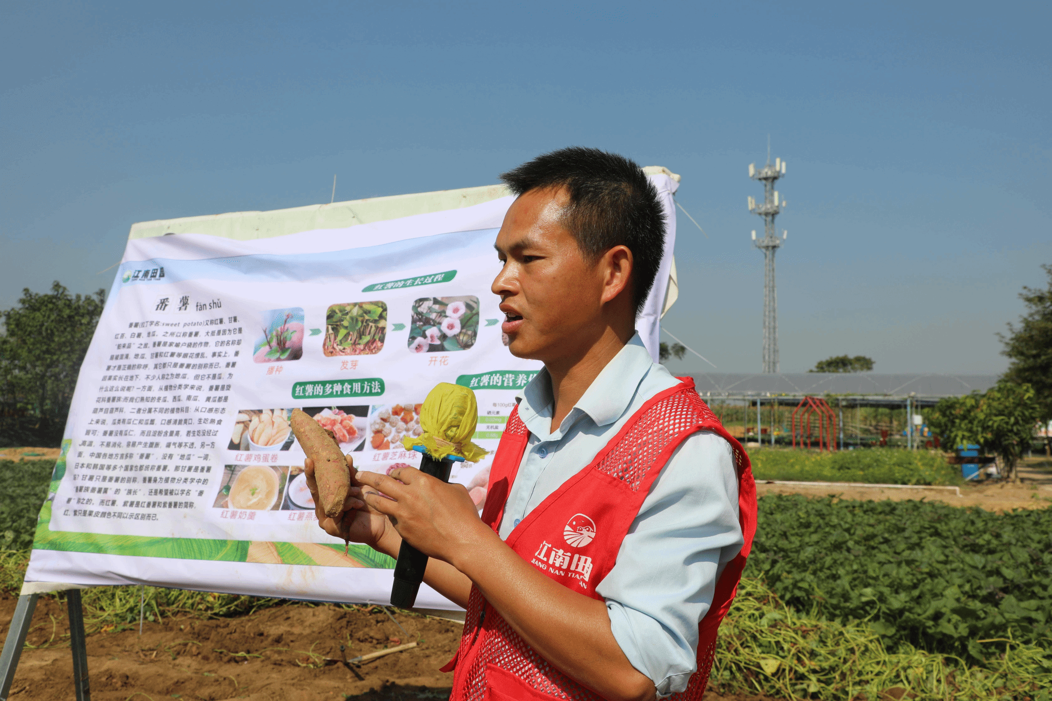 农场里,一场关于“红薯是根还是茎”的趣味讲解拉开了实践序幕。同学们亲手触摸泥土,了解块茎作物的生长特性,走进草莓、玉米、番茄和百香果种植区,通过观察作物的生长状态,聆听作物习性讲解和管理要点,学习现代农业种植技术,感悟“藏粮于地、藏粮于技”的现代农业内涵。