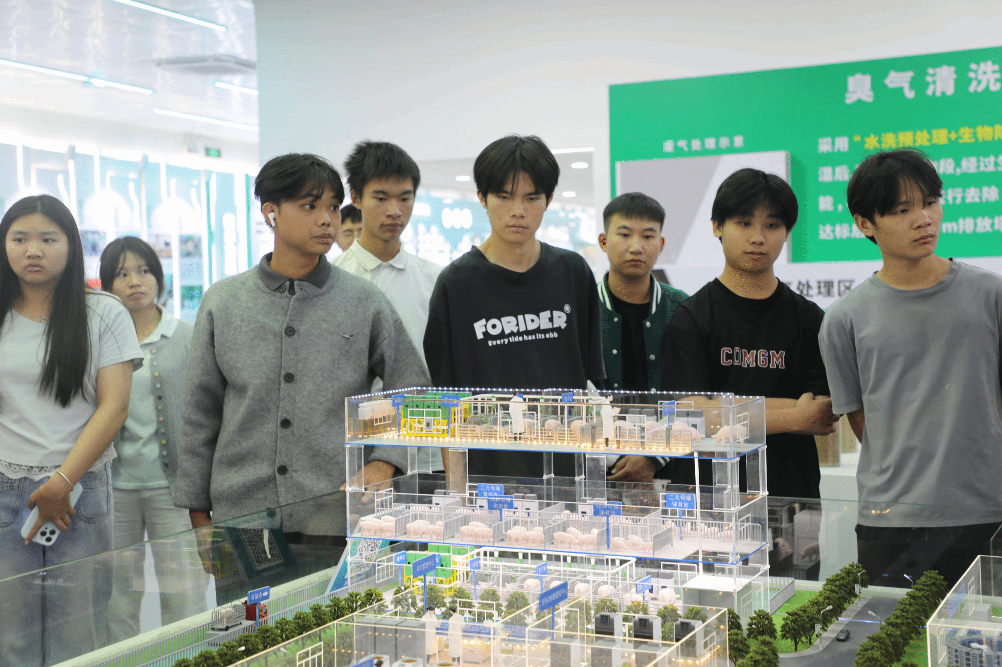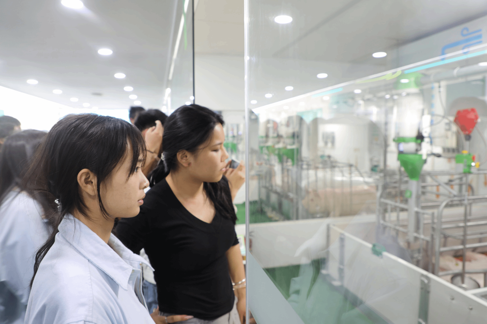 当日下午,师生到广西扬翔股份有限公司开展科技研学。在企业展厅,通过观看宣传片和听取讲解,师生深入了解企业从饲料生产、种猪育种到智能养殖的全产业链布局,感受科技创新对传统农业的深刻变革。
