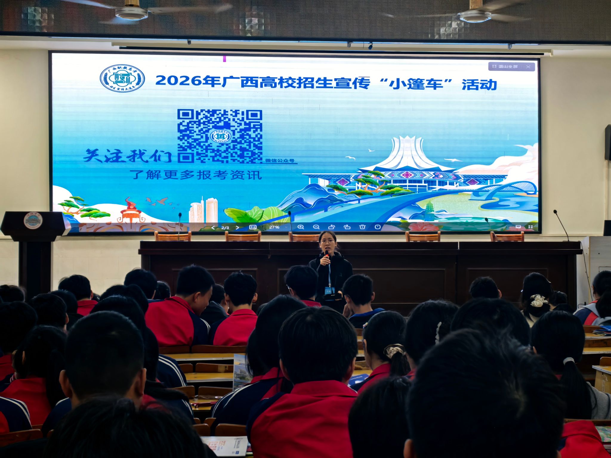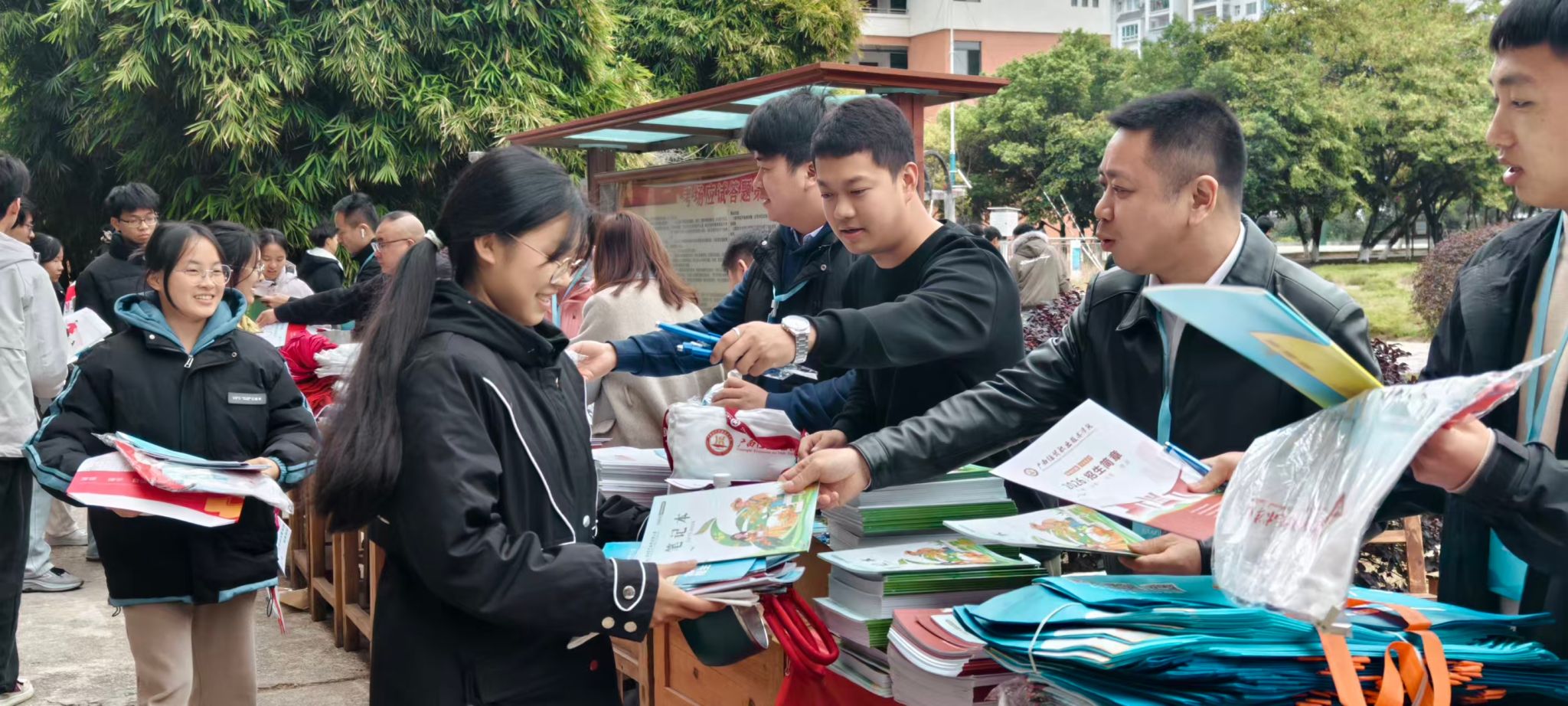 教师队伍先后深入南宁、柳州、桂林、玉林、贵港、梧州、崇左、钦州、北海、防城港、来宾、贺州等地市(县区)的近百所高中学校,发放招生宣传资料25000余份,宣传累计覆盖师生逾6万人次。