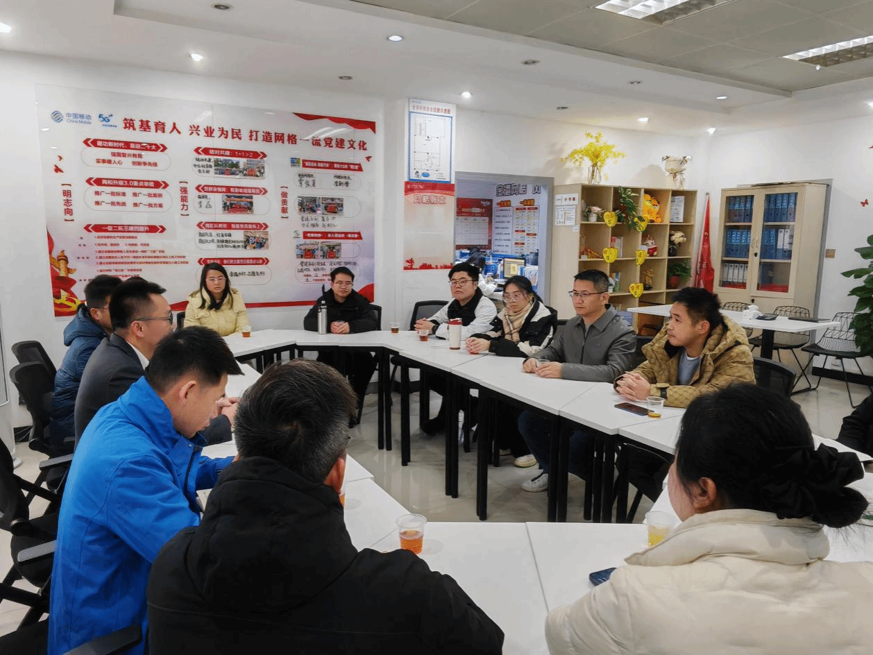 随后,教师团队赴中国移动金港营业厅实地考察,分组与企业一线党员、业务骨干交流学习,详细了解门店直播运营流程、内容策划等实操细节,就共建实践平台、开展联合教学等具体事宜深入探讨,进一步明确合作方向。