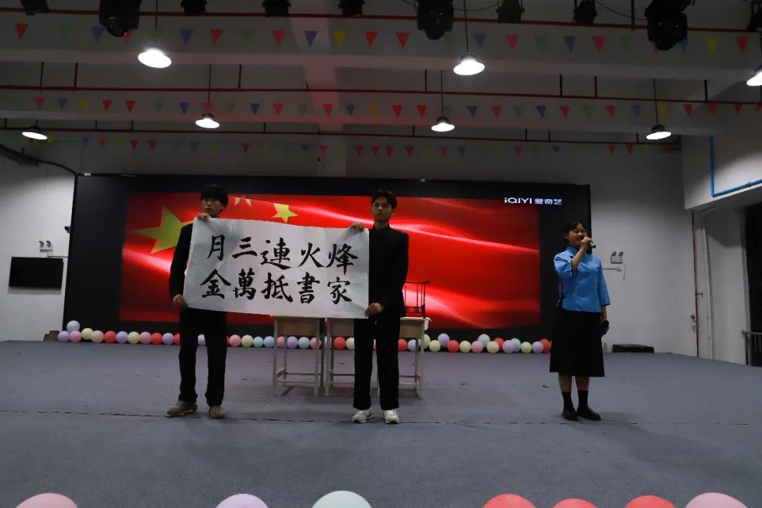 决赛现场,来自5个二级学院的16支队伍以充沛饱满的感情朗诵了《读中国》、《革命家书》、《党旗下的辉煌》等16首经典红色曲目。一首首激情澎湃的诗歌,一句句饱含深情的朗诵,表达了同学们对党和祖国的热爱之情。他们用声音礼赞了革命先烈的英勇,礼赞了中国共产党的伟大,礼赞了中国人民的团结奋进,让现场观众深切感受革命先烈坚如磐石的理想信念,深切感受中国共产党波澜壮阔的百年征程,深切感受中国人民团结奋斗的民族精神,让党史学习教育、主题教育更接地气、更“声”入人心。