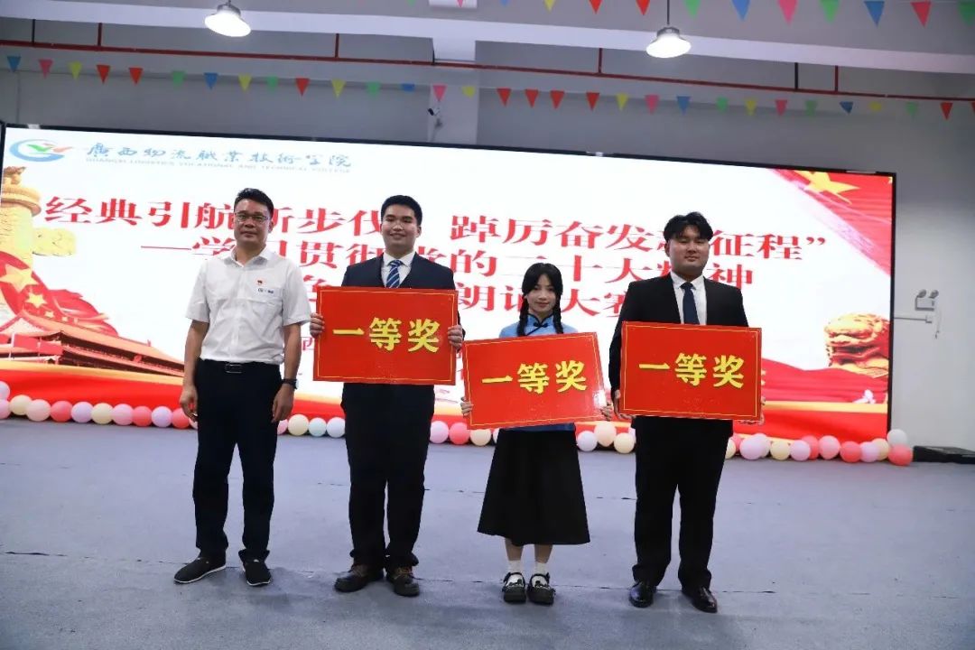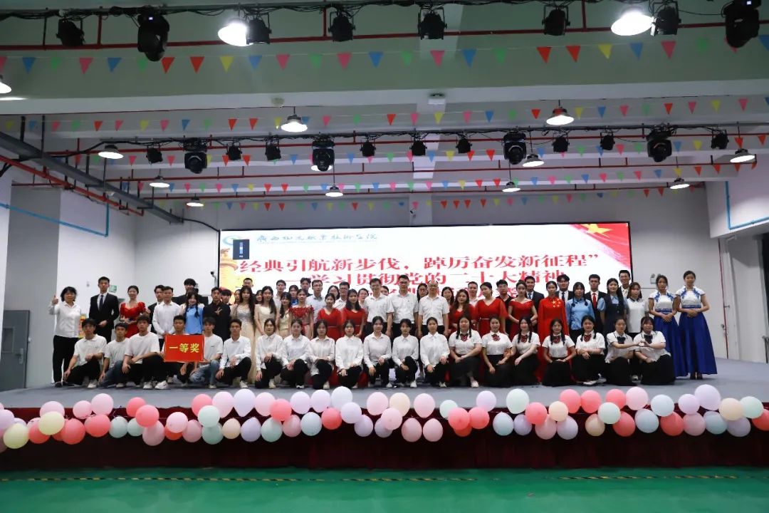 学校领导为获奖队伍颁发荣誉证书。经过激烈角逐,《青春中国》、《红船 从南湖启航》、《读中国》等3个节目荣获一等奖,《青春中国》、《革命家书》、《盛世中国》、《祖国万岁》、《月光下的中国》等5个节目荣获二等奖,《中华中华》、《我有一个强大的祖国》、《我爱这土地》、《党旗下的辉煌》、《信念永恒》等8个节目荣获三等奖。