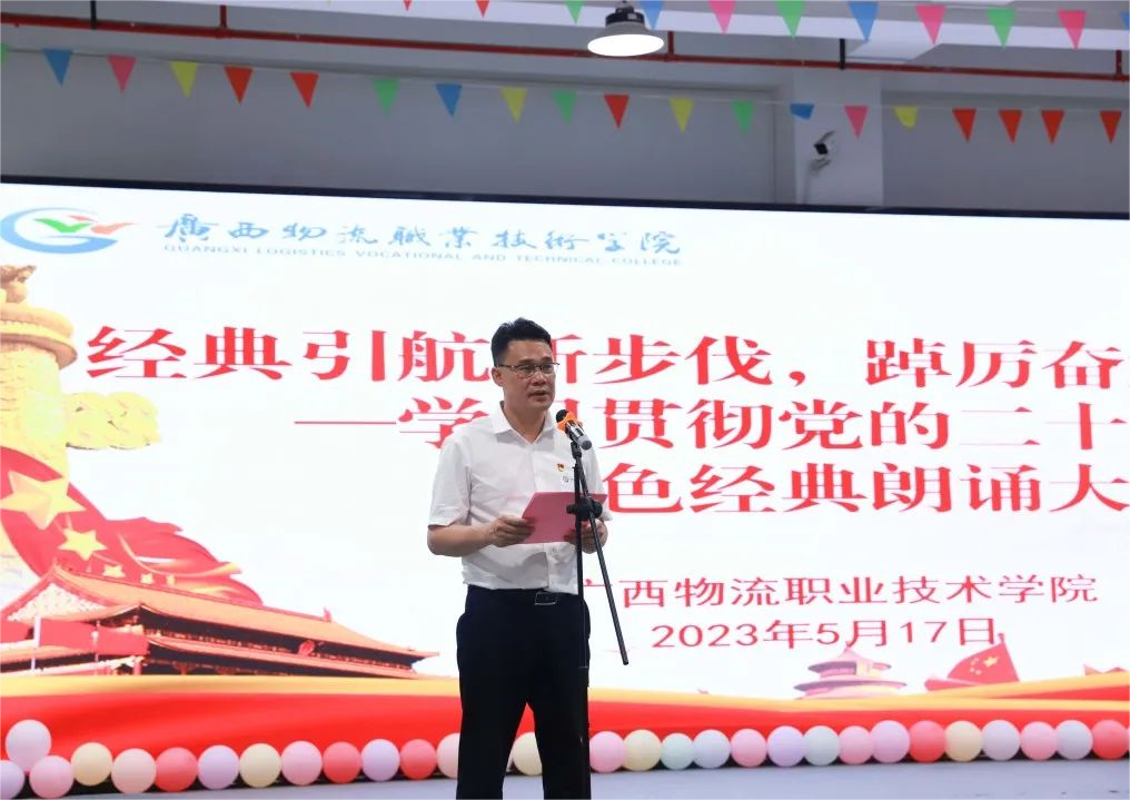 为深入学习贯彻党的二十大精神,引领全校师生用声音传递奋斗之志,以初心凝聚奋进力量,2023年5月17日晚,beat365在线唯一官网举办“经典引航新步伐,踔厉奋发新征程”红色经典朗诵比赛决赛。学院党委书记韦光茂、副院长陈赋光出席活动。