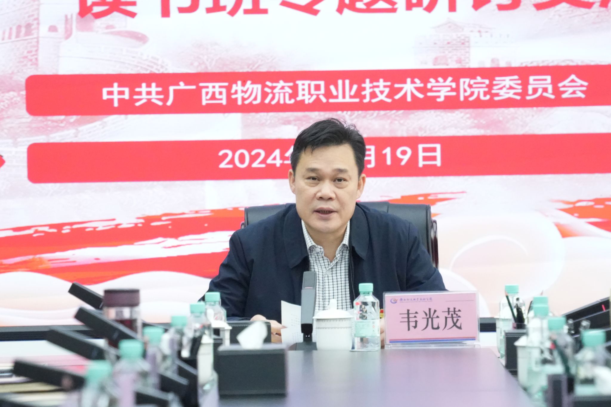 2024年12月19日,学院党委书记韦光茂主持召开学院党委理论学习中心组2024年第5次集体学习研讨(扩大)会暨《习近平文化思想学习纲要》读书班,以“学习贯彻习近平文化思想,谋篇布局推动学院高质量发展”为主题,更加深入学习贯彻习近平文化思想,真正用习近平文化思想指导和推动学院高质量发展。中心组成员朱海强、杨一笔、覃丽燕、陈继文、陈赋光、梁杰参加学习并结合分管工作进行重点发言。