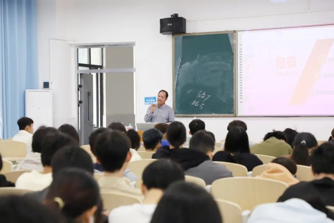 ▲党委书记韦光茂讲授题为“让青春在走好中国式现代化道路上绽放绚丽之花”思政课
