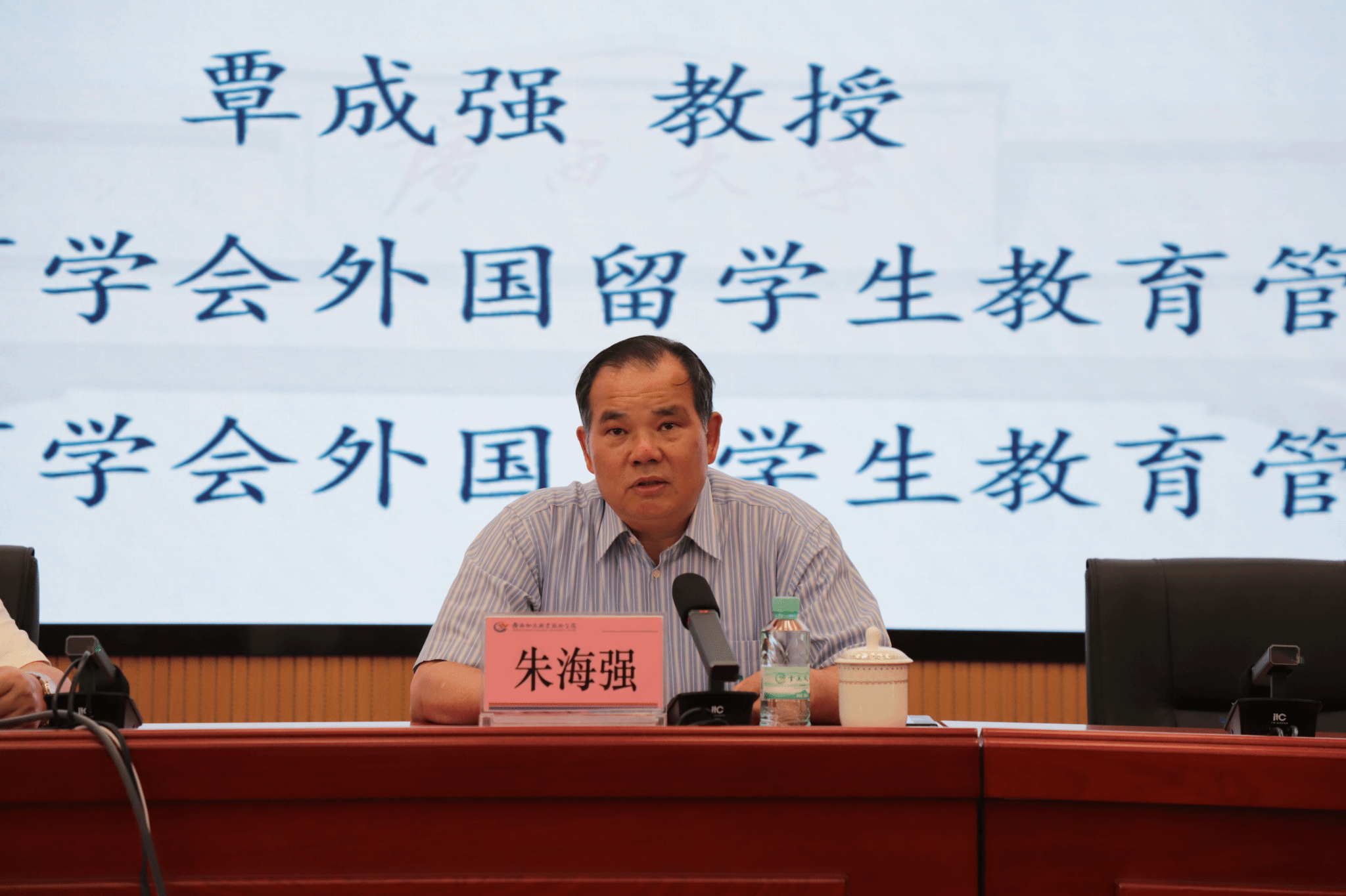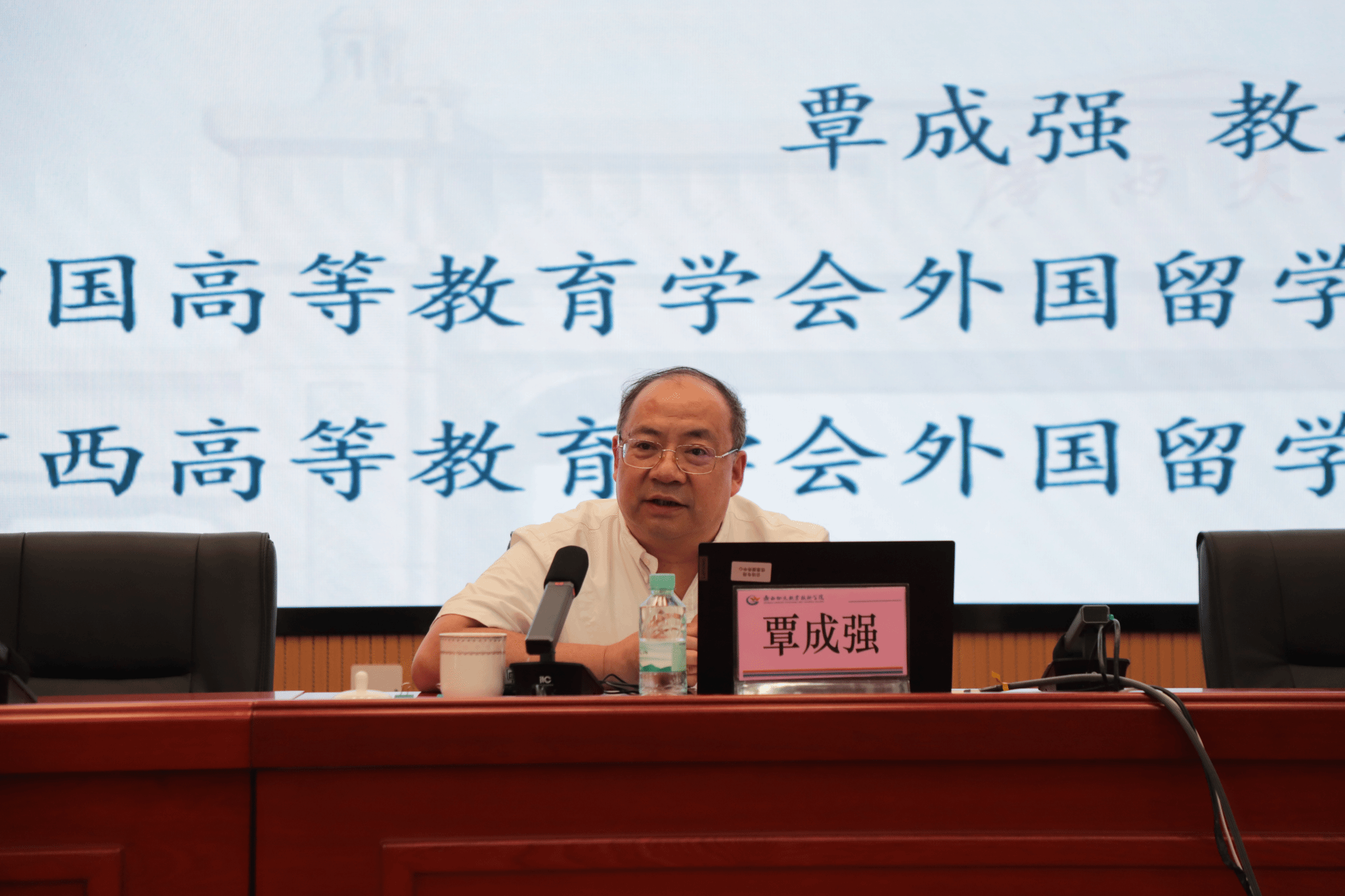2025年4月15日,为积极响应国家职业教育国际化发展战略,提升beat365官网国际化办学水平,beat365官网特邀中国高等教育学会外国留学生教育管理分会副理事长,广西高等教育学会外国留学生教育管理专业委员会理事长覃成强教授为全校教职工带来了一场题为《广西高职院校提高国际化水平的SWOT— PEST分析》的主旨讲座。讲座由学校党委副书记、校长朱海强主持。