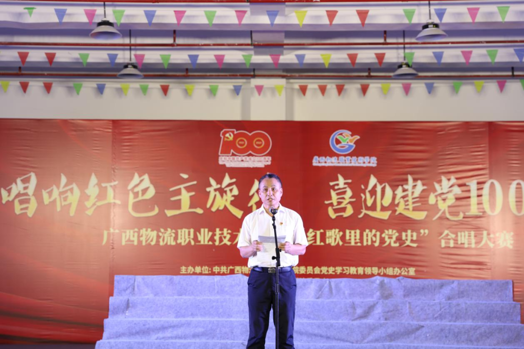 学院党委副书记章红平致开幕词。他指出,这次红歌比赛活动是学院庆贺建党100周年系列的重要活动,希望广大教职员工、青年大学生中唱响“永远跟党走”的主旋律,永远感党恩、听党话,跟党走。他强调,全体师生要以红歌传唱为契机,在红歌的感召下,把对祖国母亲的热爱,对共产主义的追求,融入到歌声中,进一步激发我们的爱国情操,激发我们热爱物院的热情,凝聚人心、凝聚精神、凝聚士气,唱出激情、唱出力量、唱出团结、创出干劲,用红色的革命主旋律,营造健康向上、团结奋进的良好氛围;以更加饱满的热情、更加昂扬的斗志、更加务实的作风,投身到加快推进物流学院教育事业发展的实践当中。作为一所新办的院校,更加需要牢记嘱托、感恩奋进、创出一片新天地!