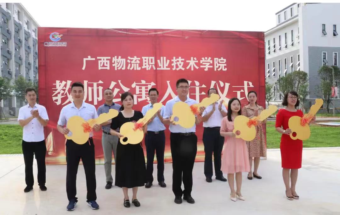 物流学院领导向引进的高层次人才代表与教职工代表颁发“金钥匙”。物流学院商学院教师胡吉作为入住的教职工代表向集团公司党委、学院党委的关怀致以感谢,表示定会恪尽职守、率先垂范,为打造广物院成为“千亩万人”的现代物流人才培养高地贡献自己的力量。