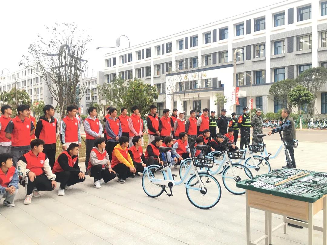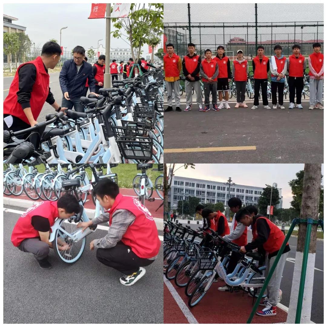随后,党员教师带头对校园内摆放不规范的共享自行车进行整理,利用专业知识对共享自行车进行检修,对校园内的学生进行督导宣讲,倡议大家讲文明、爱护环境,为共建美丽校园贡献自己的一份力量。