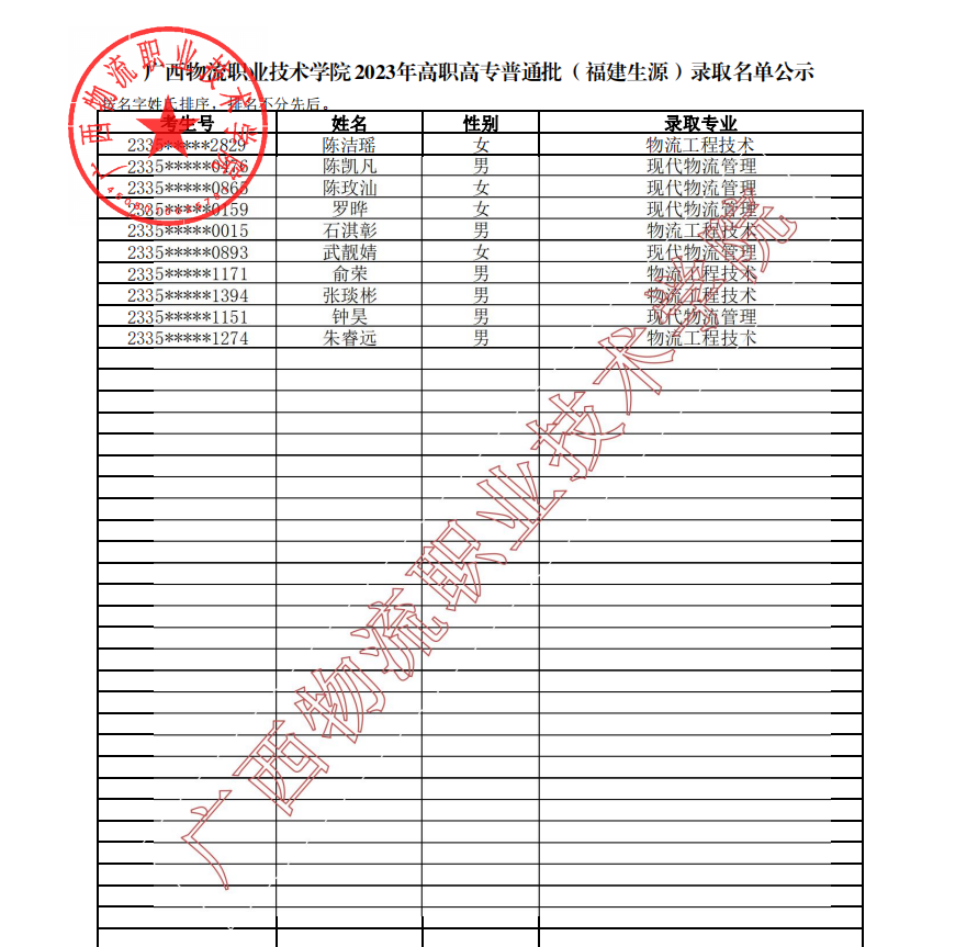 beat365在线唯一官网2023年高职高专普通批(福建生源)录取名单公示