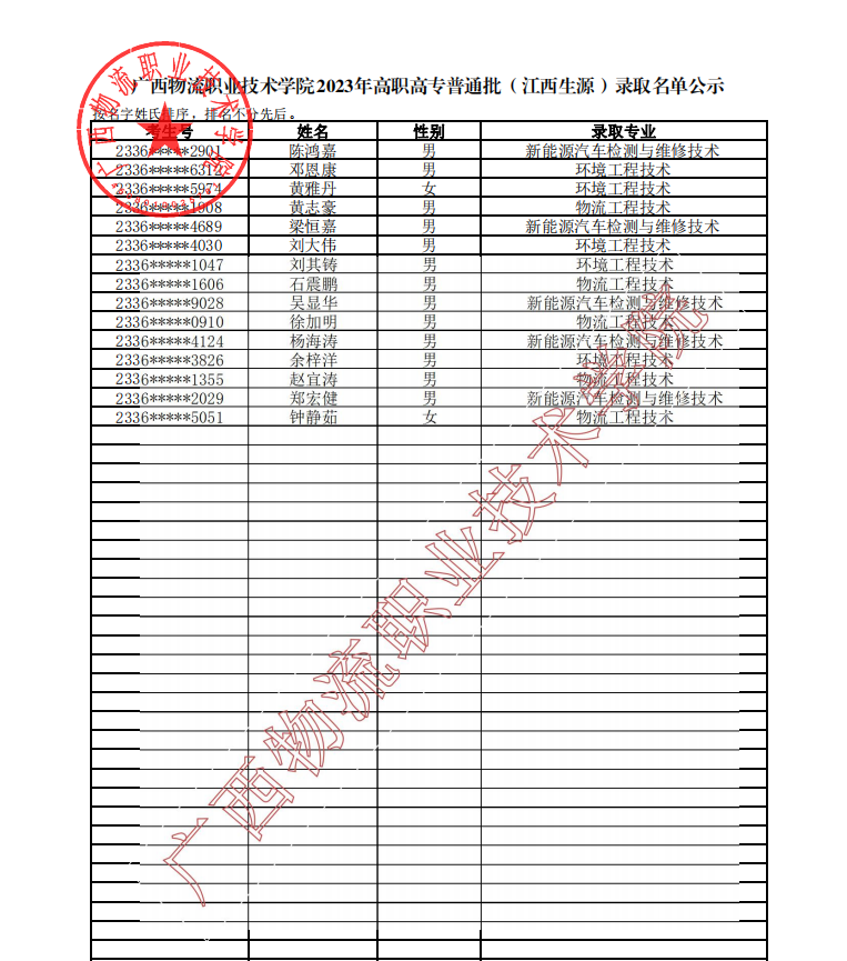beat365在线唯一官网2023年高职高专普通批(江西生源)录取名单公示