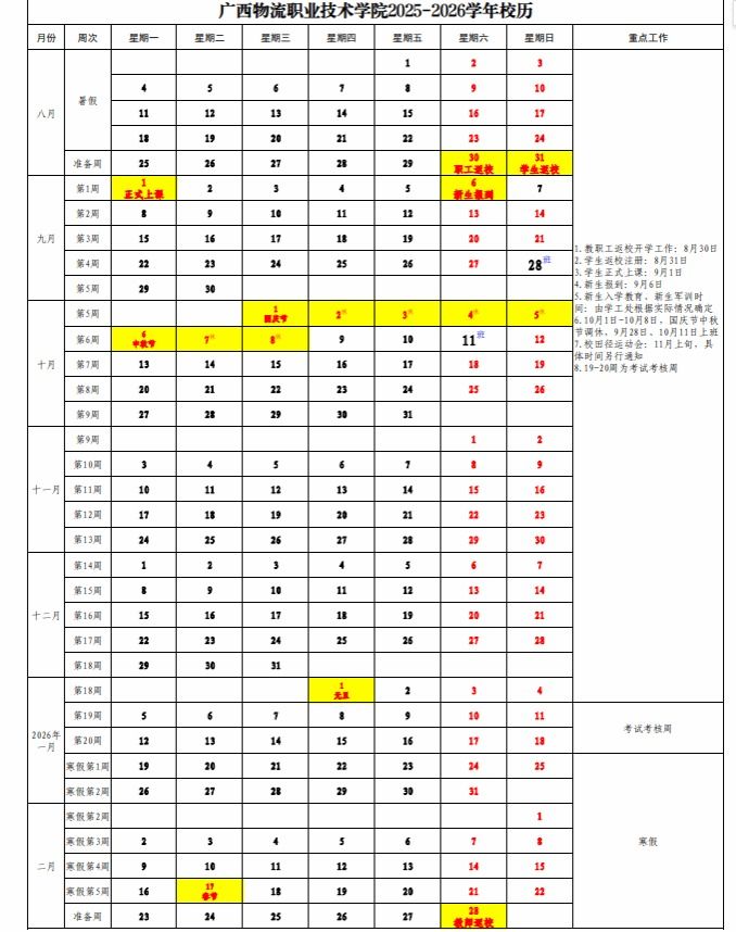 beat365在线唯一官网2025-2026学年校历