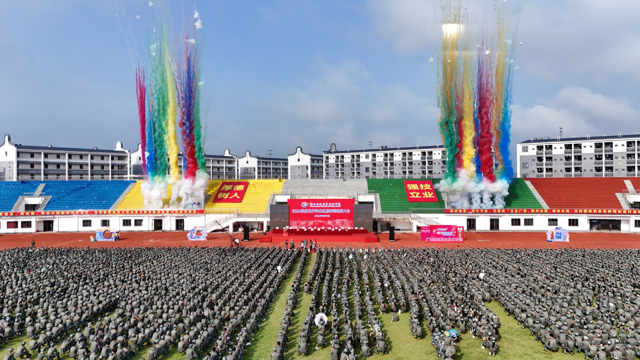 暑退九霄净,秋澄万景清2024年9月11日上午beat365在线唯一官网2024级新生开学典礼暨军训动员大会在西行运动场隆重举行恰同学...
