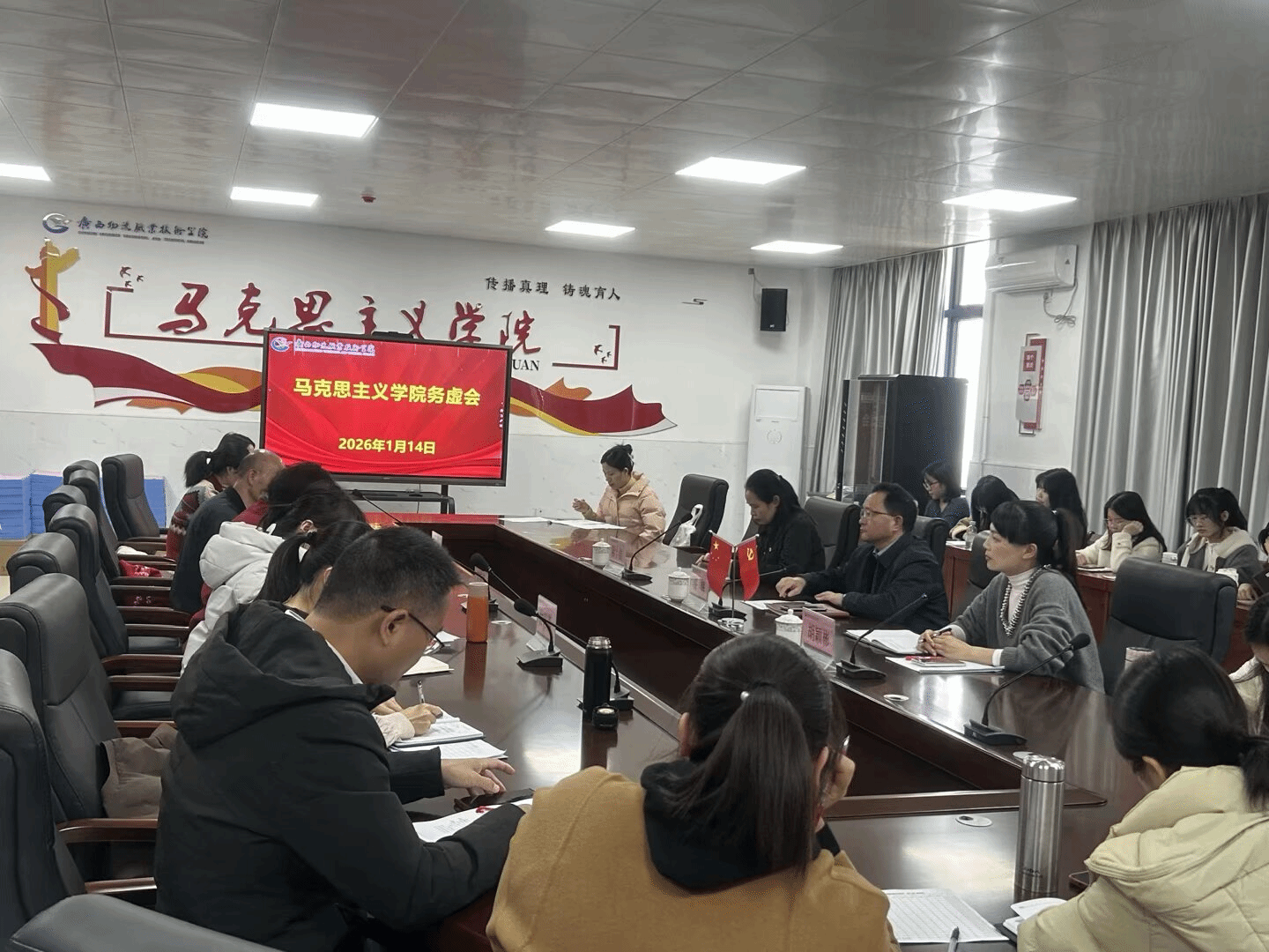 1月14日下午,马克思主义学院在独秀北205会议室召开2026年工作务虚谋实会。学校党委书记漆辉出席会议并讲话。漆辉对马克思主...