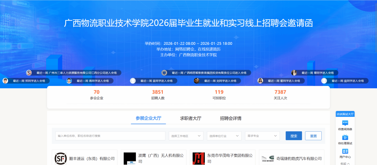 1月22日至1月25日,beat365官网成功举办2026届毕业生就业和实习线上招聘会。本次招聘会共汇聚70家企业参与,释放可投职位119个、招聘...