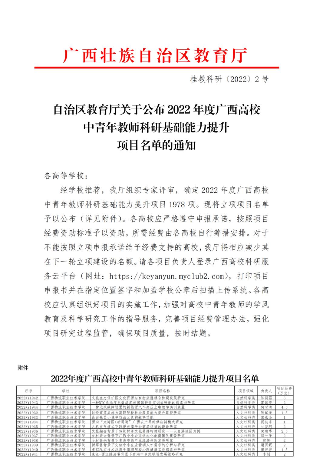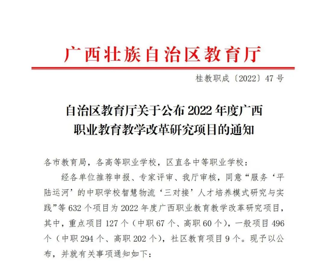 喜报 | 全部立项!广西物流职院申报的2022年度广西高校中青年教师科研基础能力提升项目课题喜...