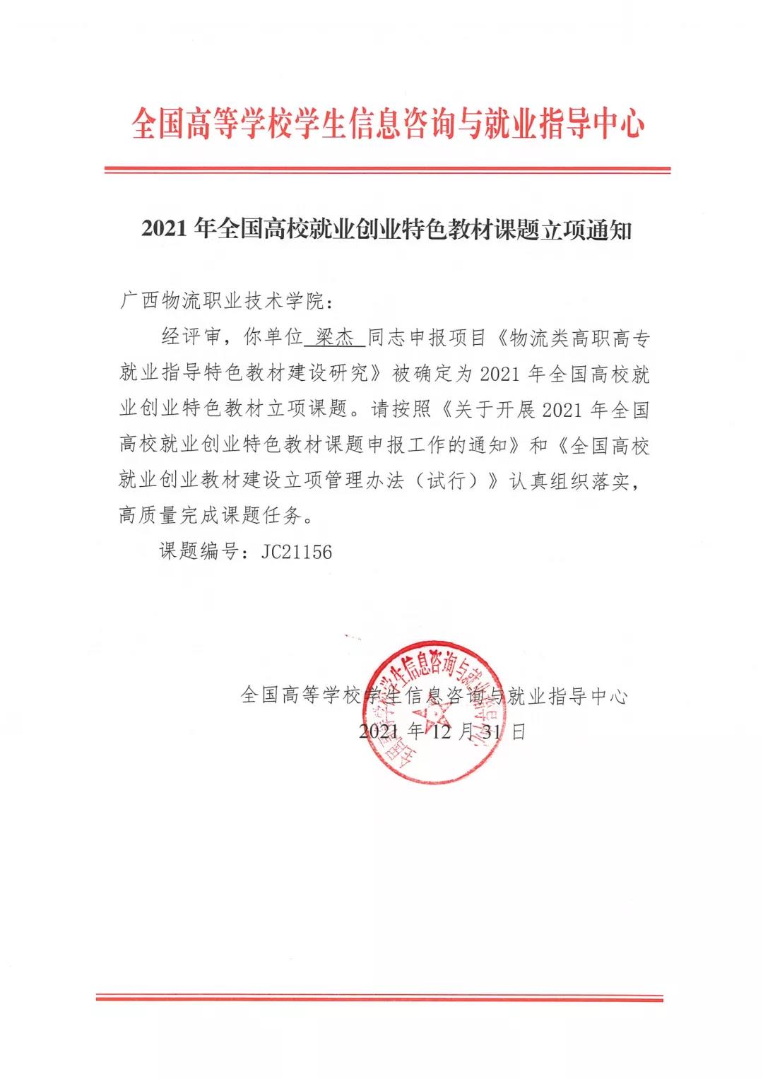 喜讯!beat365官网获批2021年全国高校就业创业特色教材课题立项