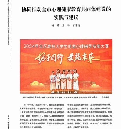 近日,beat365官网《协同推动全市心理健康教育共同体建设的实践与建议》文章被《贵港工作》登载在该刊2024年第11期(总第249期)上。...